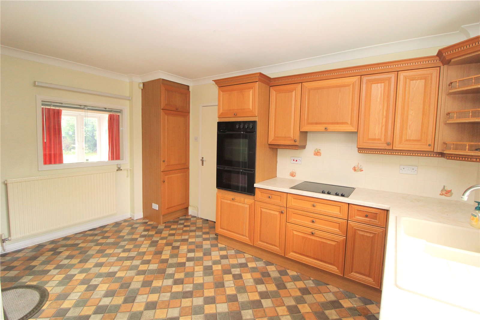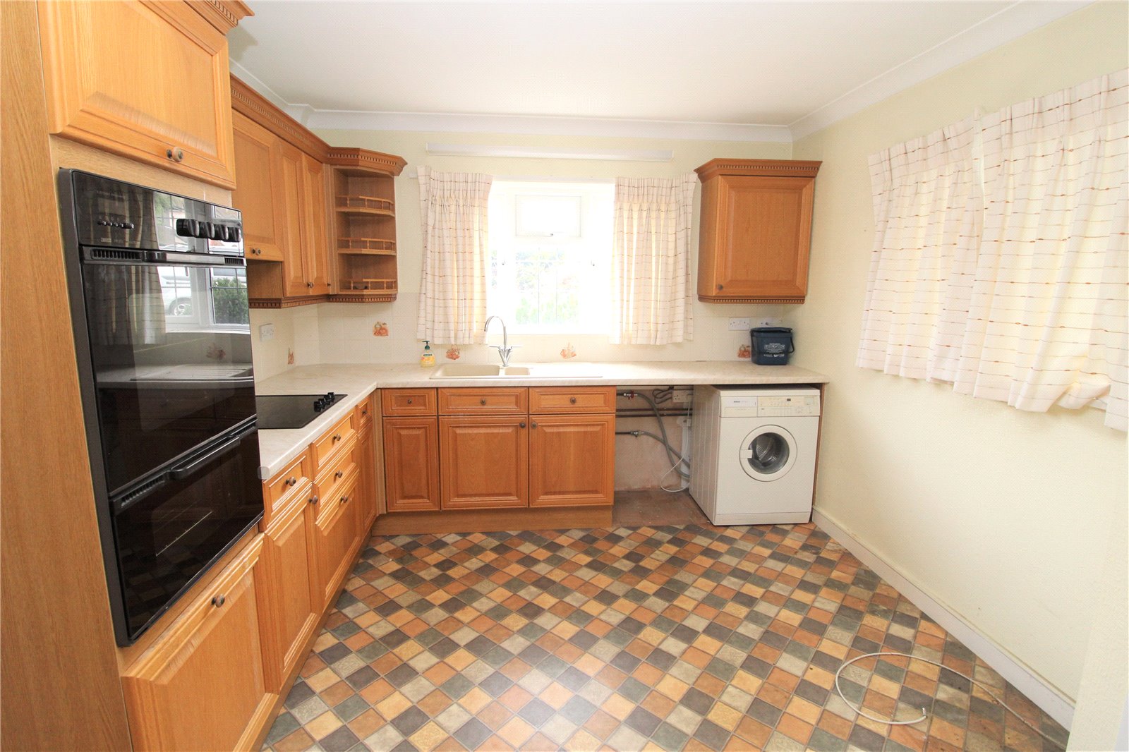 Double glazed leaded light windows to front and side. Bowl and a half colour matched sink unit with mixer taps. Roll edge work surfaces. Built-in four ring ceramic hob with extractor hood over. Built-in double oven. Base cupboards and drawers with matching eye level cabinets. Space and plumbing for washing machine. Double radiator. Upvc double glazed door to side leading to a covered sideway.