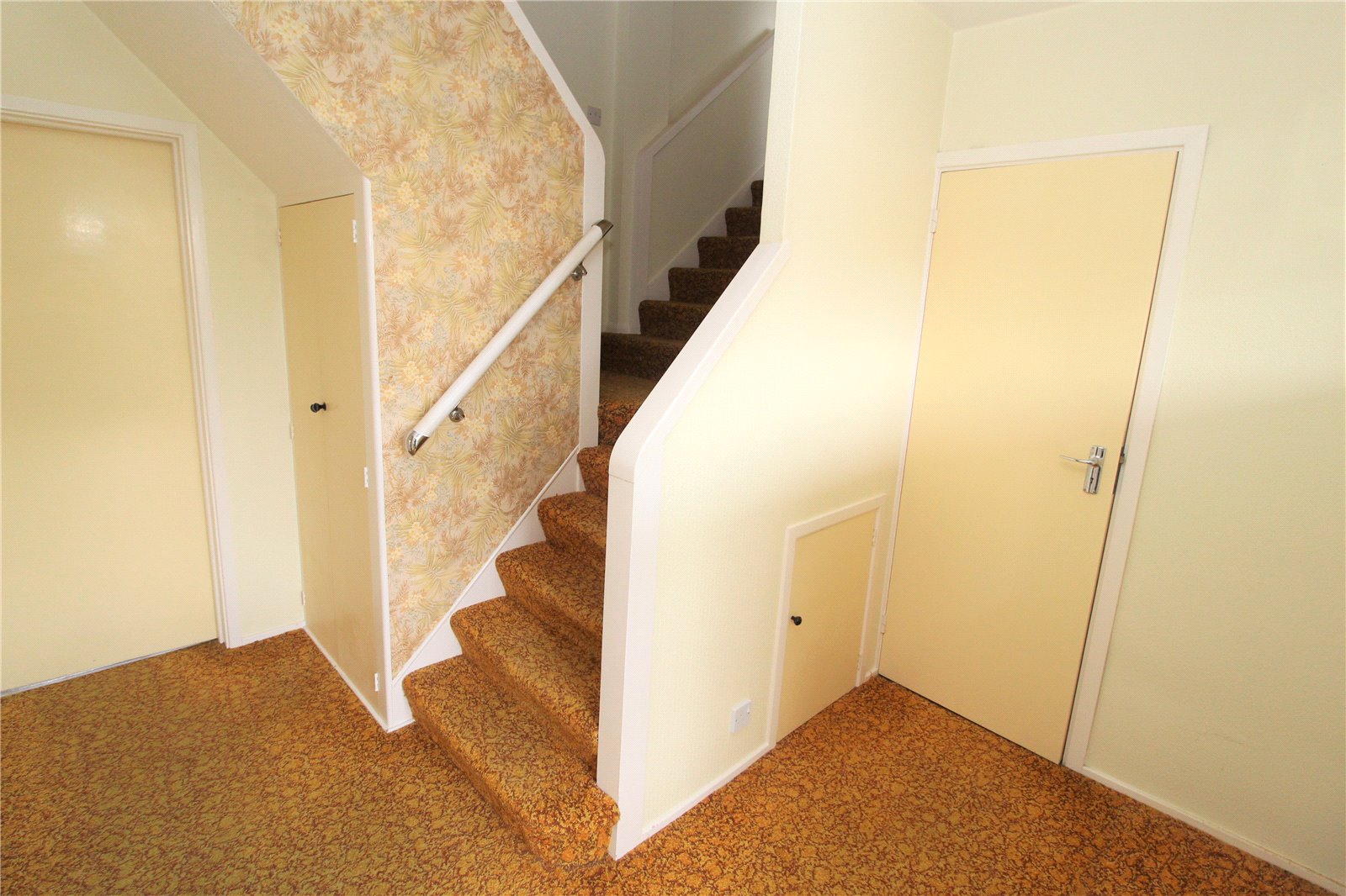 Staircase to first floor and landing. Double radiator. Understairs storage cupboard housing meters. Leaded light window to front. Panelled door to