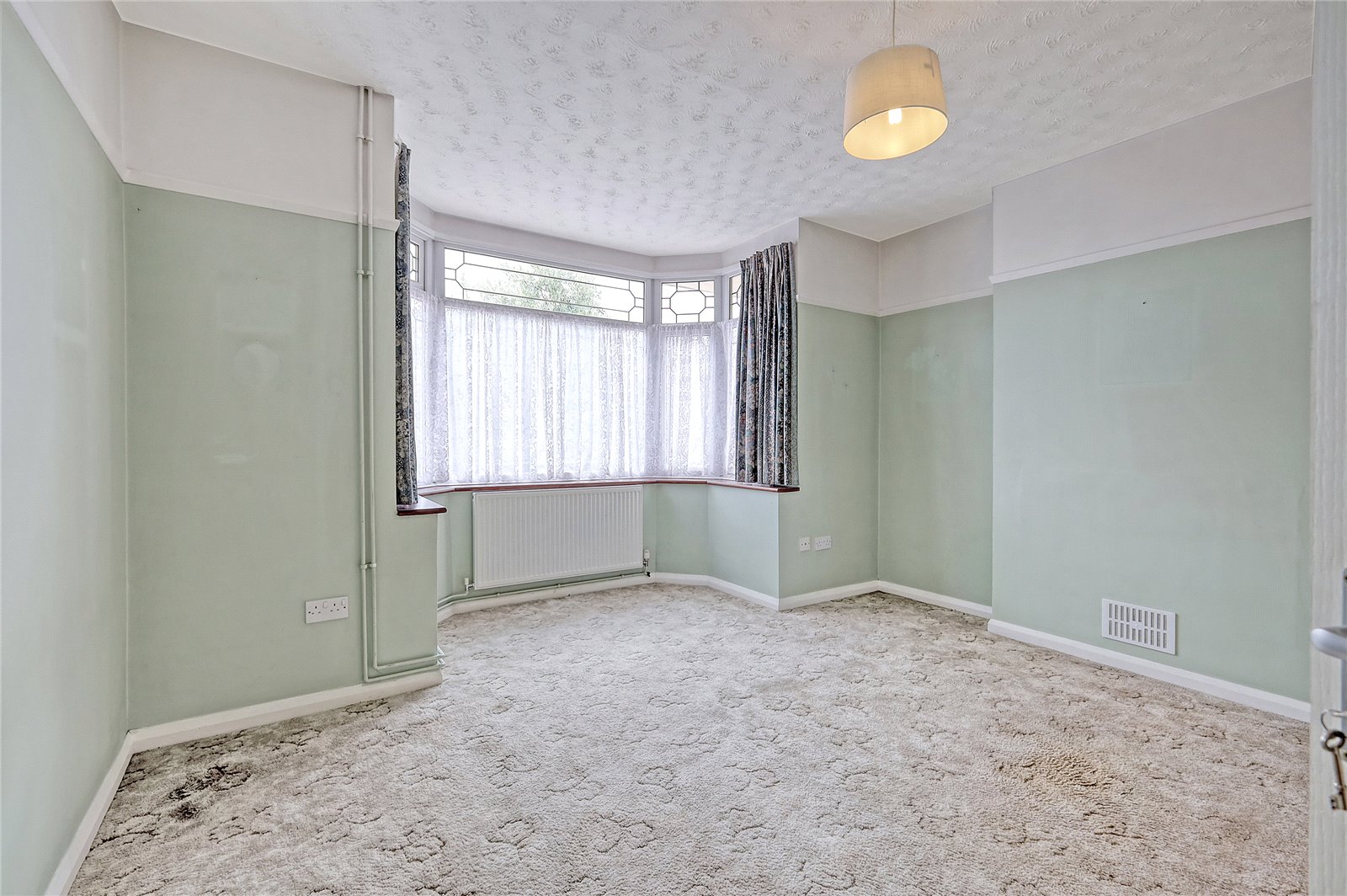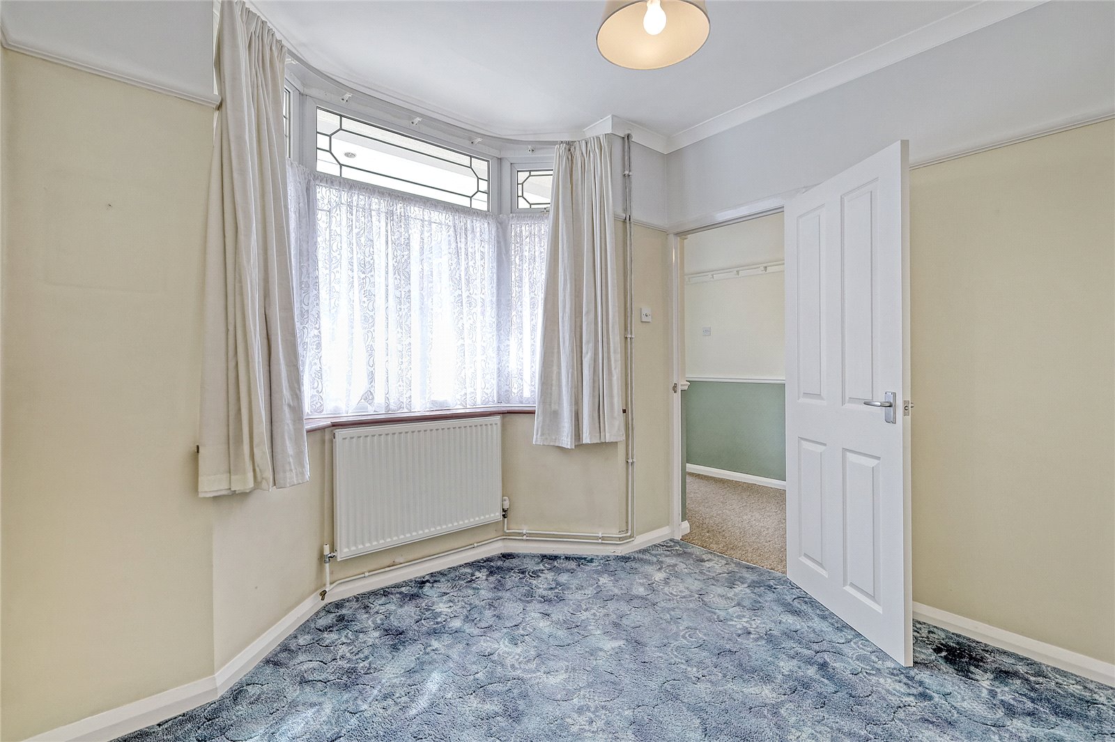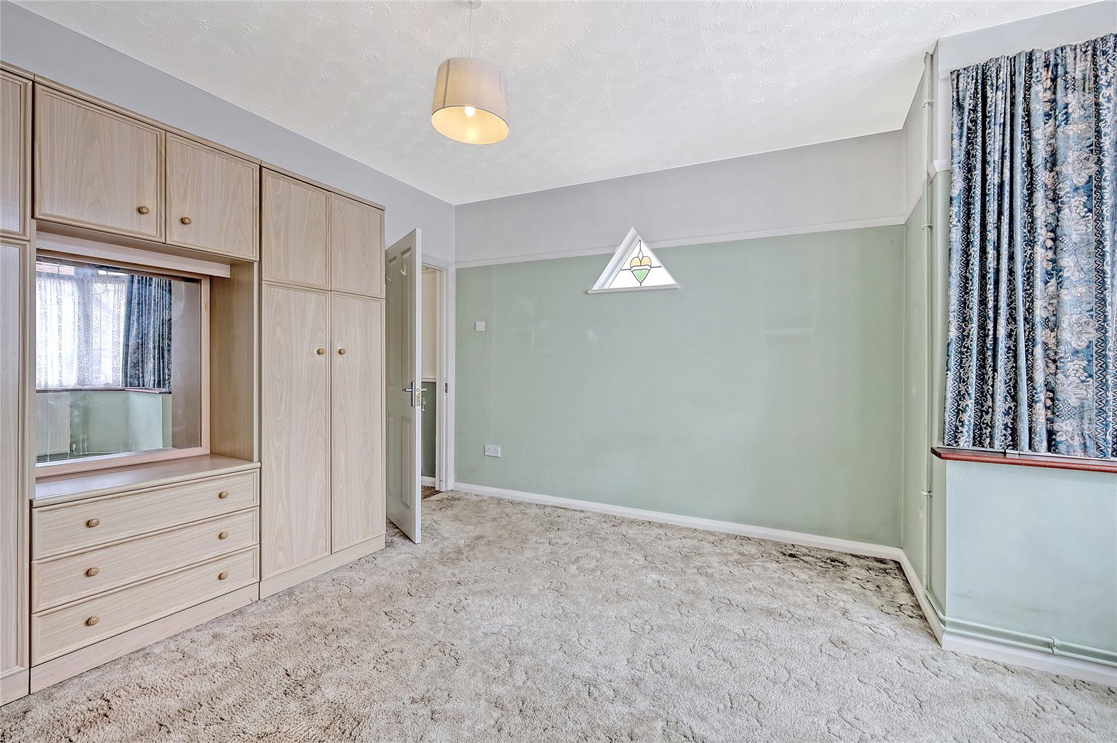 Into bay. Large UPVC double glazed bay window unit to front. Feature leaded light window to side. Wall mounted radiator. Range of fitted wardrobe units. Feature picture rail.