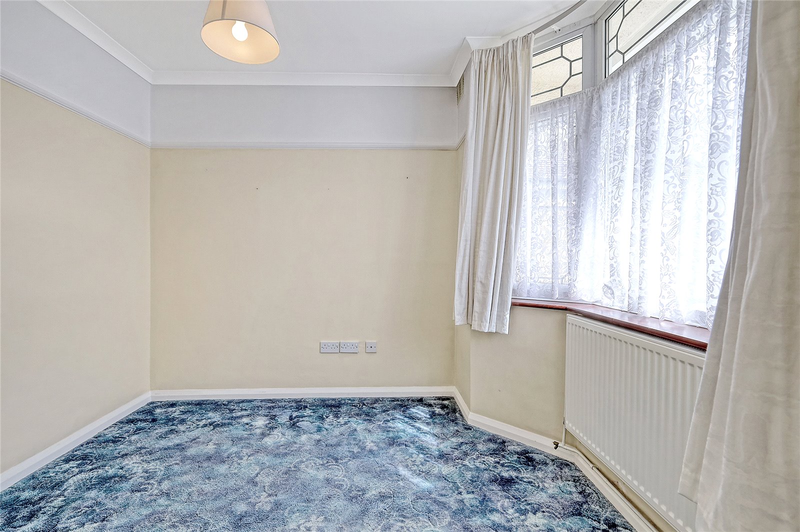 UPVC double glazed window to side. Wall mounted radiator. Feature ceiling rose.