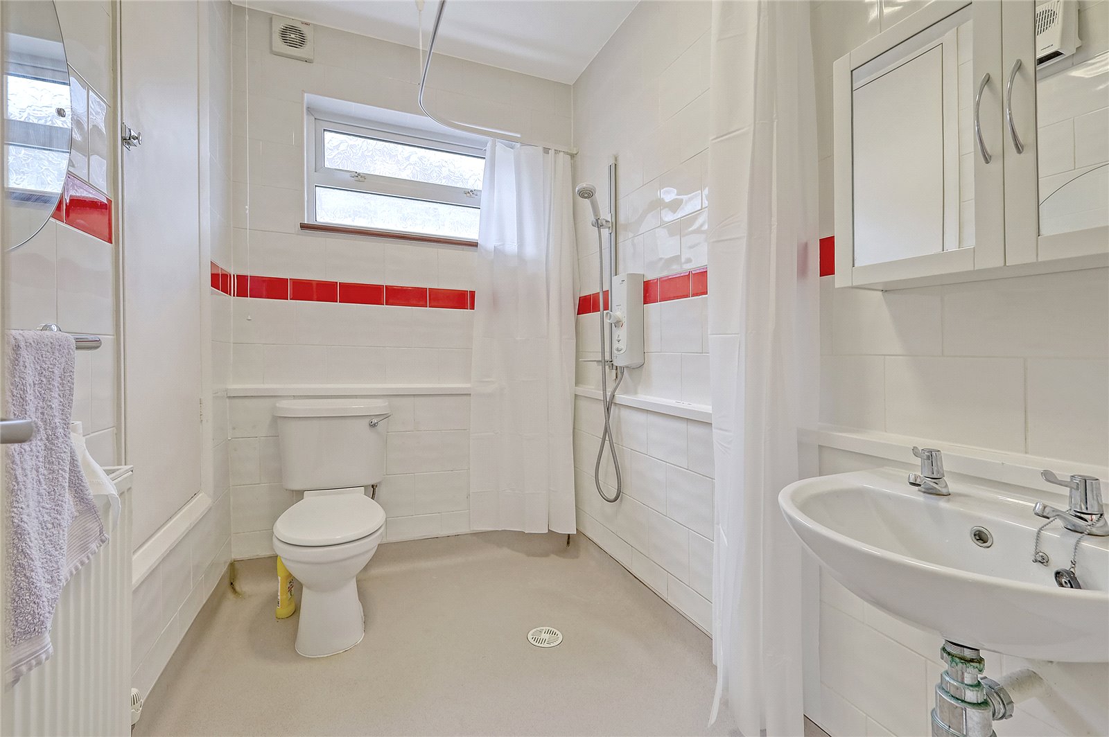 UPVC double obscured glazed window to side. Wet room is fitted with a modern three piece suite comprising low flush WC, wall mounted wash basin and wall mounted electric shower with adjustable showerhead. Non slip flooring throughout. Fully tiled walls. Smooth plastered ceilings. Wall mounted extractor fan. Wall mounted fan heater. Wall mounted radiator. Storage cupboard to side with radiator.