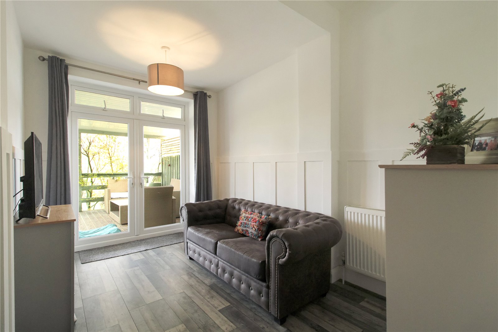 UPVC double glazed window to front aspect with fitted shutters. Featuring carpet to floor, skirting, radiator, and original feature fireplace. Stylish panelled and papered walls, completed with original coving, smooth plastering, and ceiling light. Sliding door to rear with access into the ensuite shower room.