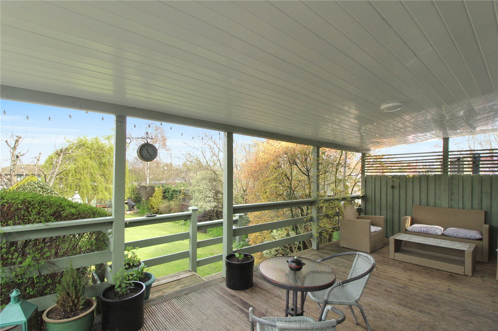 From the kitchen leading out to a generous raised decking area, perfect for a relaxing summers day or entertaining friends and family, steps down to a laid to lawn garden with trees and shrubs to border. Paved seating area and summer house to rear. Paved side passage with gated access to the driveway.