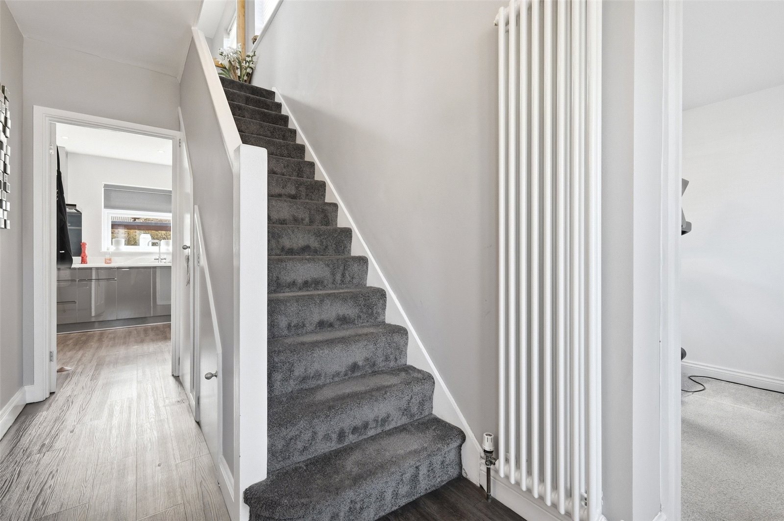 A spacious entrance hallway with 'Karndean' oak flooring, lipped skirting and access to two understairs storage cupboards. Staircase to first floor landing, designer vertical radiator, smooth plastered ceiling. Panelled doors lead off to ground floor rooms: