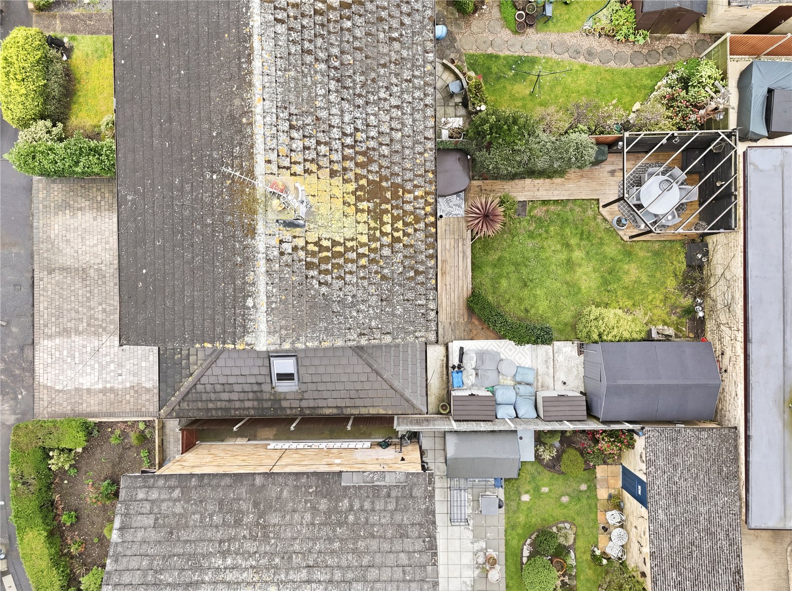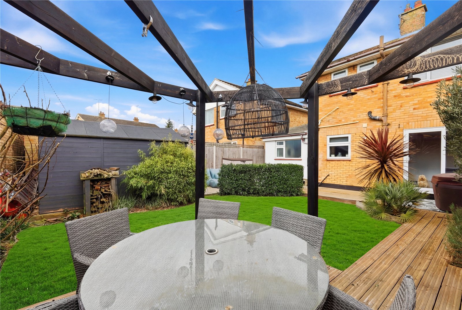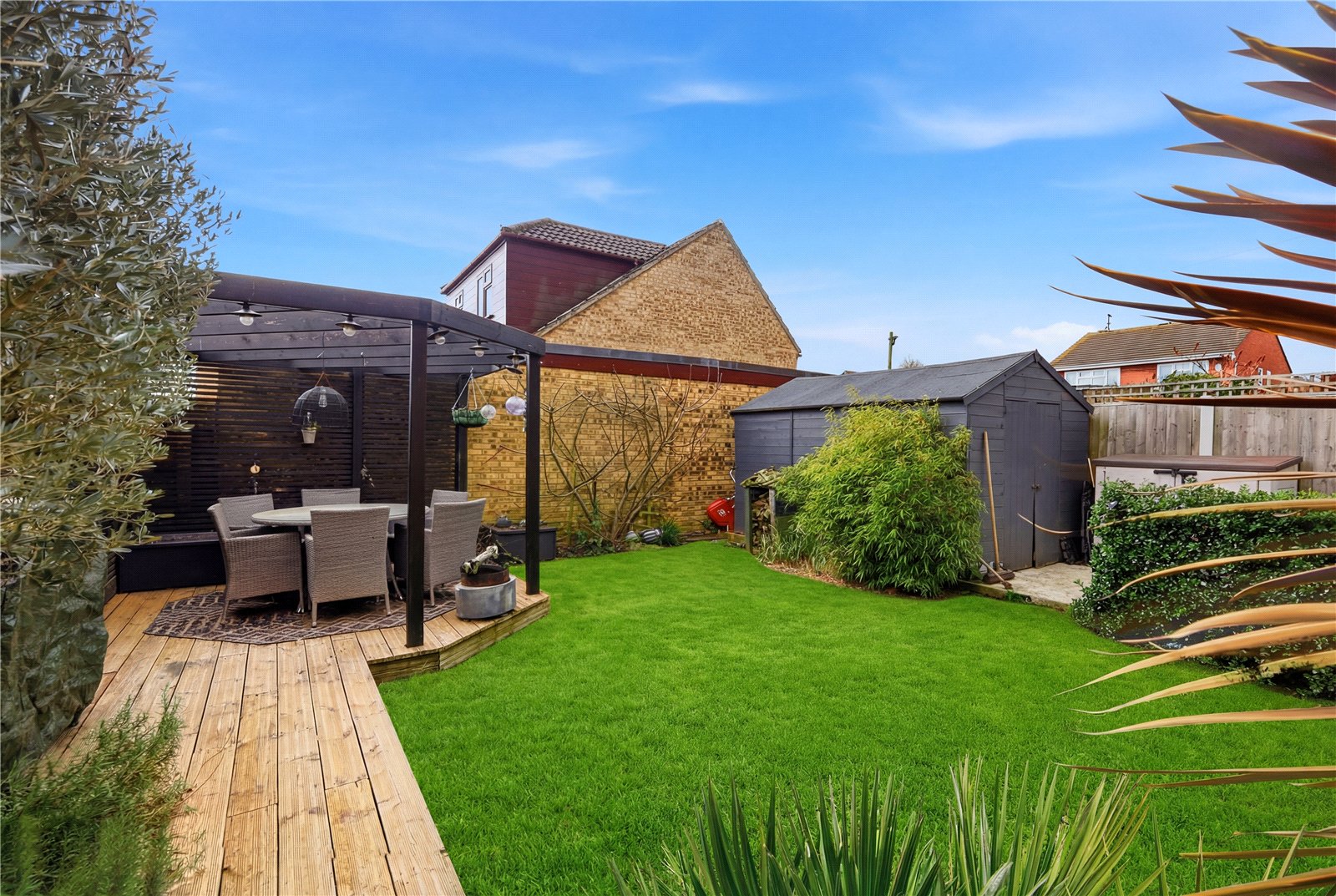 The south facing, landscaped rear garden commences from the kitchen/dining room with a decked patio terrace that extends to one side, into a sun-trap terrace area, ideal for dining al-fresco. Hardstanding for timber garden shed, established planted flower and shrub borders. Pergola-covered outdoor lounge area. Secure gated side access to the front of the property. External water supply. External power supply.