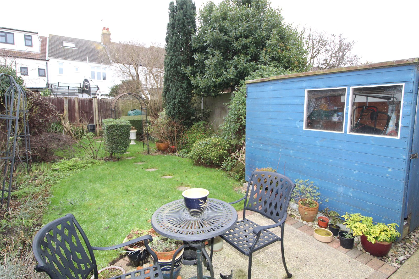 Commences with a paved patio area with the remainder laid to lawn with flower and shrub borders, timber storage shed to remain.