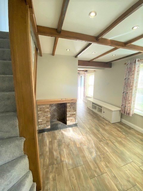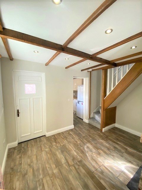 Further panelled side entrance door. Hardwood double glazed multi-pane windows. 'Wunda Floor' underfloor heating with oak board effect porcelain tiled floor. Lipped skirting. Double fronted 'Stock' brick fireplaces with herringbone detailing and solid wood mantles. Exposed oak ornamental beams. Smooth plastered ceiling. Recessed LED lighting. Access to storage cupboard housing meters and trip switch box. Wall mounted thermostat for underfloor heating system. Turning staircase to first floor landing with oak detailing. Doors lead off to Kitchen and Utility Room/Laundry: