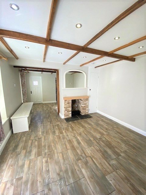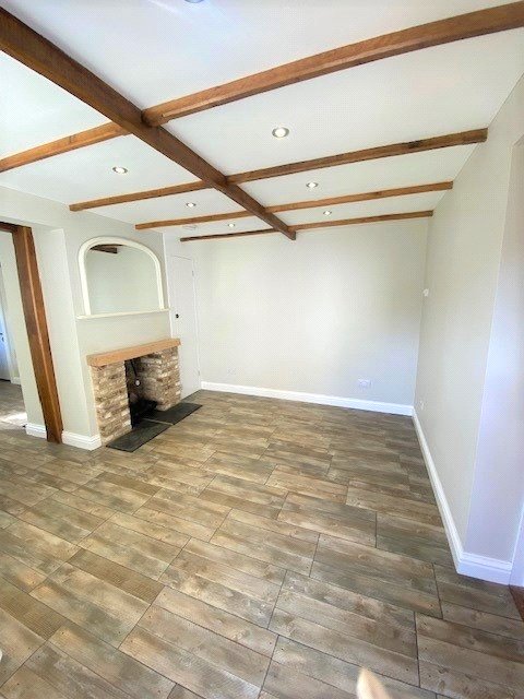 Hardwood double glazed multi pane window to front. Lipped skirting. Radiator. Feature cast iron fireplace with slate effect paved hearth. Smooth plastered ceiling with recessed LED lighting.