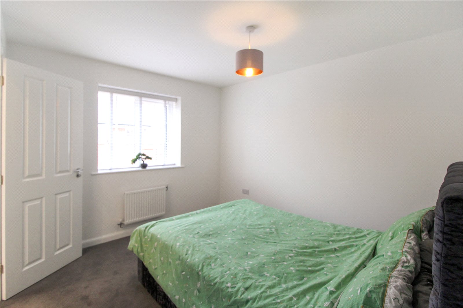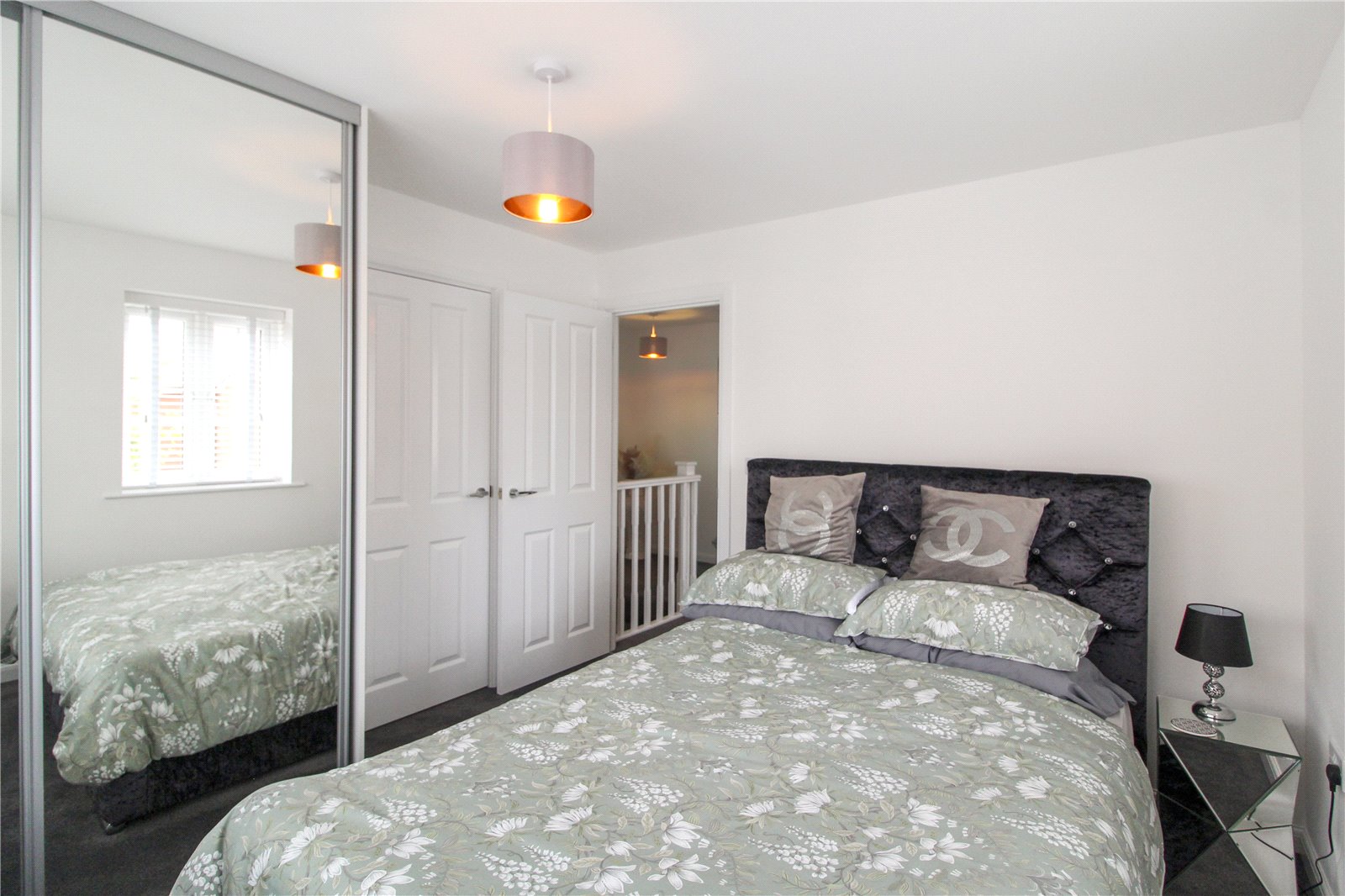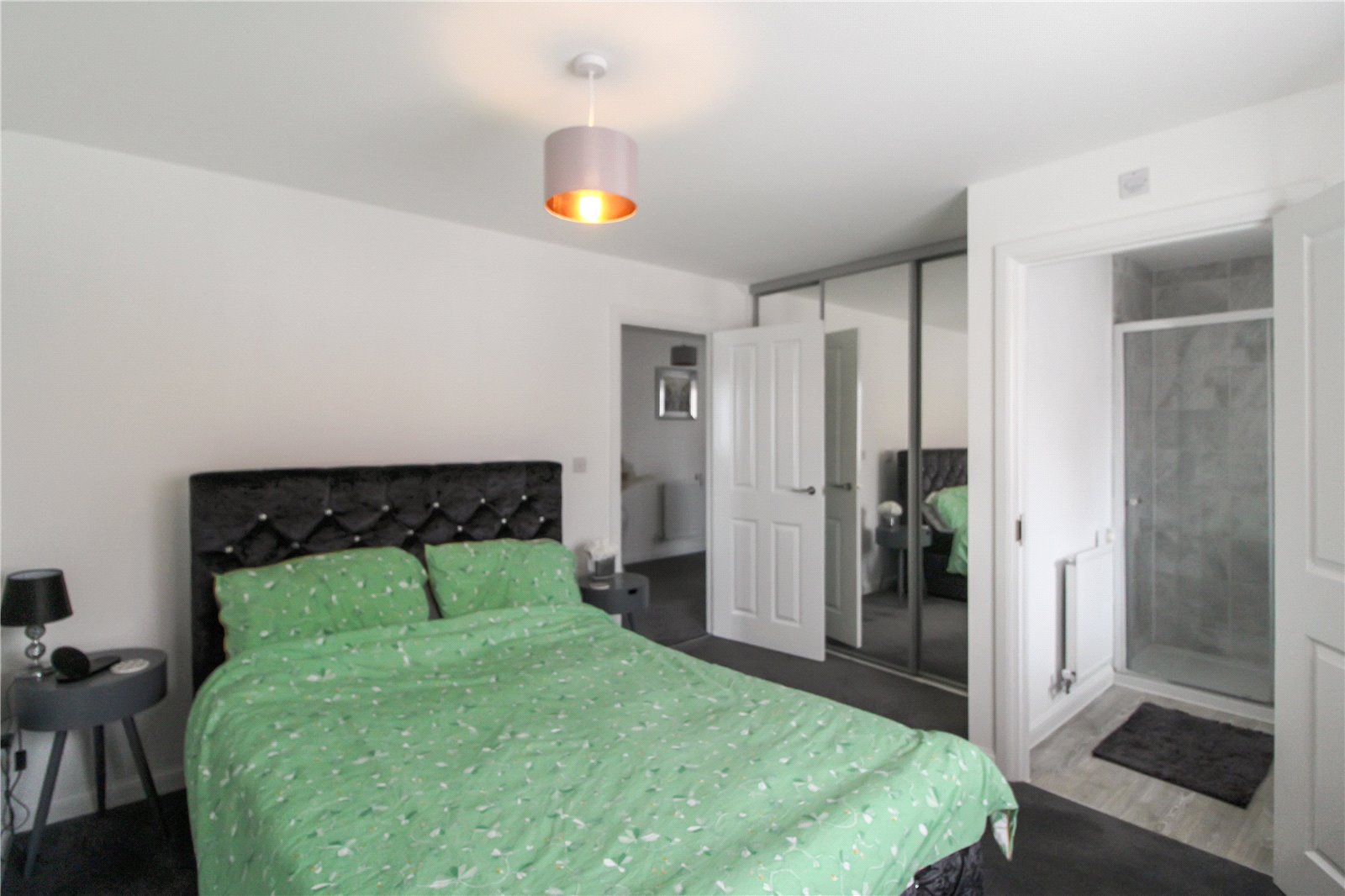 Carpeted flooring with smooth walls and ceiling with ceiling light. Fitted wardrobe, UPVC double glazed window to front aspect and radiator. Door leading into ensuite.