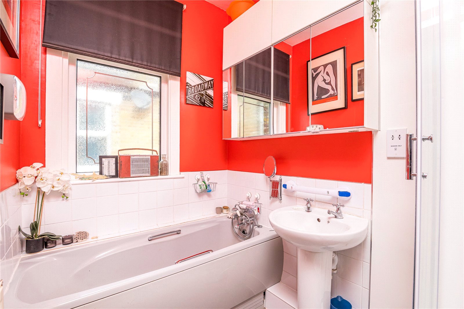 UPVC obscured double glazed window to side. bathroom is fitted with a three piece suite comprising panelled bath with mixer tap and detachable overhead shower attachment. Pedestal wash hand basin and corner Quadrant shower cubicle with glass sliding doors. Wall mounted electric shower with adjustable showerhead. Wall mounted radiator. Fully tiled walls. Part tiled floors. Large fitted vanity mirror with large storage behind. Smooth plastered ceilings.