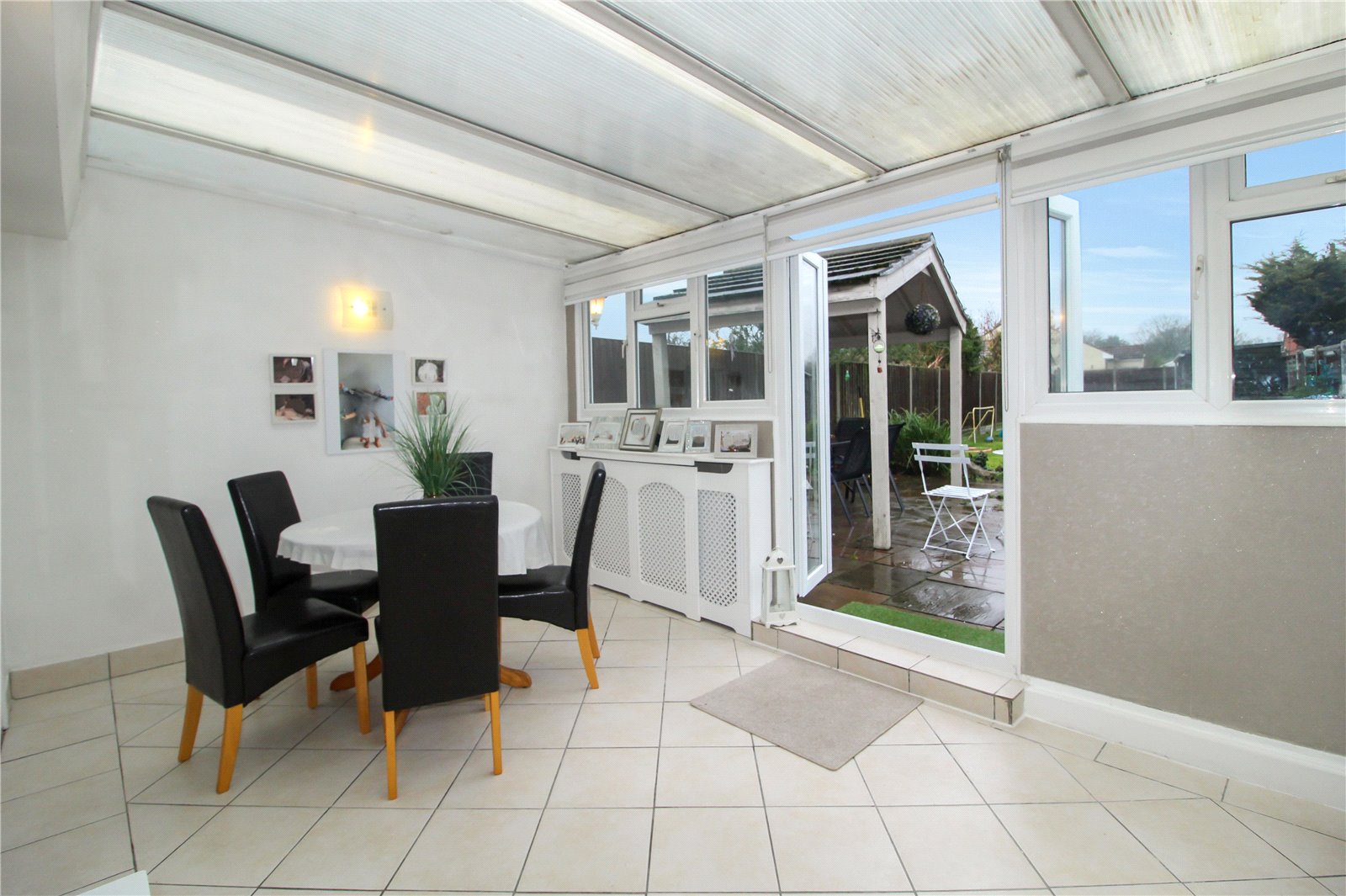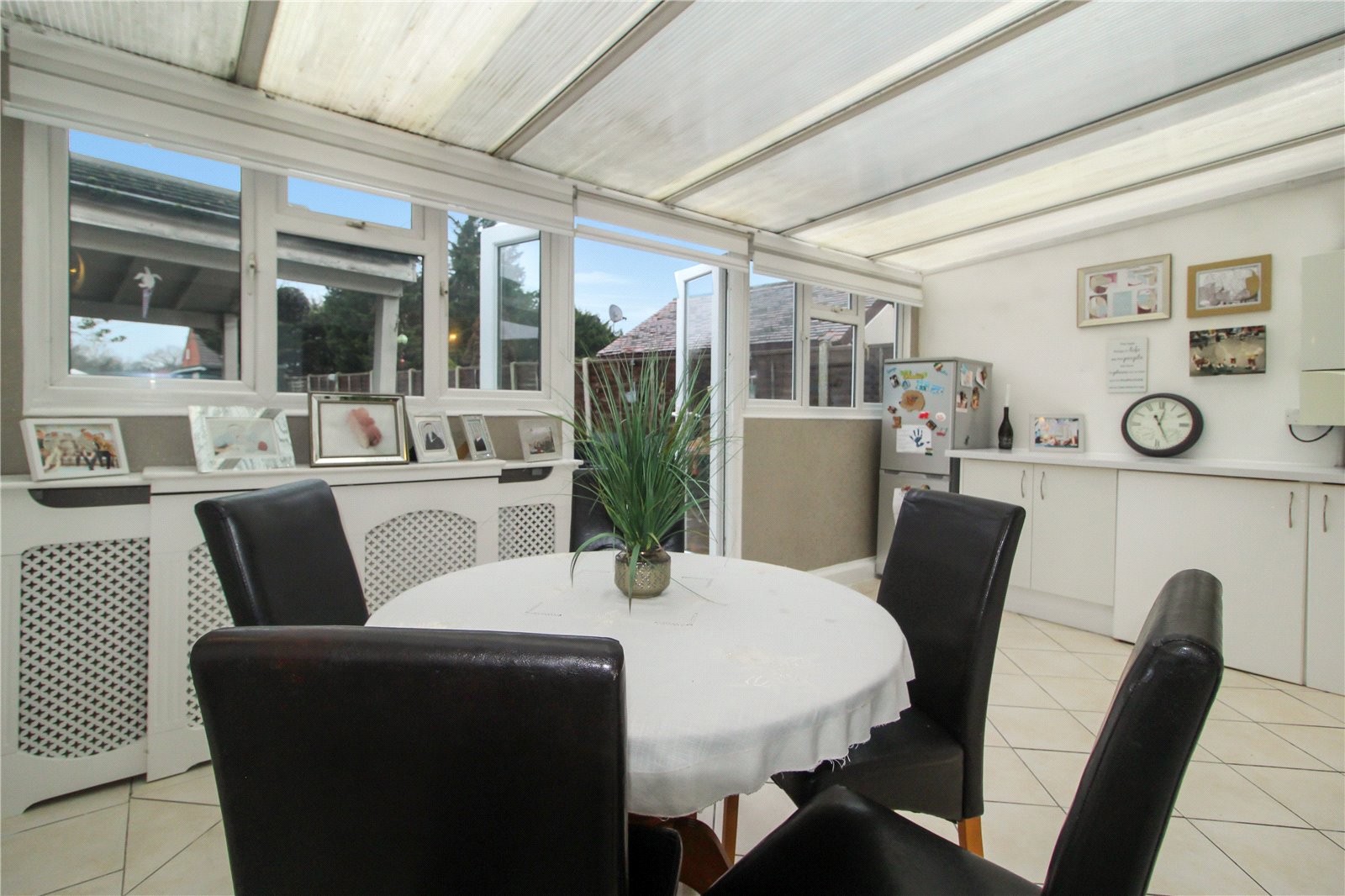 Doors with glazed inserts to rear into conservatory. Fitted storage cupboard set within alcove. Carpet to floor. Skirting. Double banked radiator. Chrome light switches. Smooth plastered walls. Coving to smooth plastered ceiling. Ceiling light.
