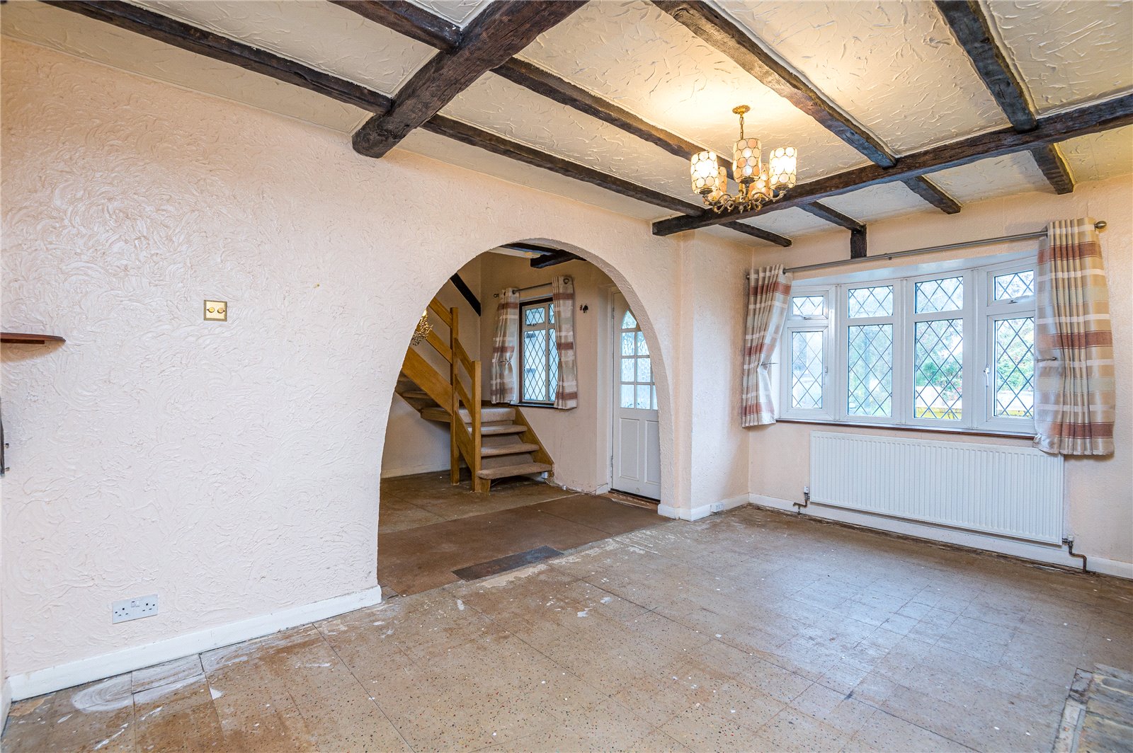 A double fronted, extended, three bedroom semi-detached chalet with panoramic farmland views, a detached double length garage and extensive private driveway. Fantastic potential to re-model (STPC). Offered with no onward chain.