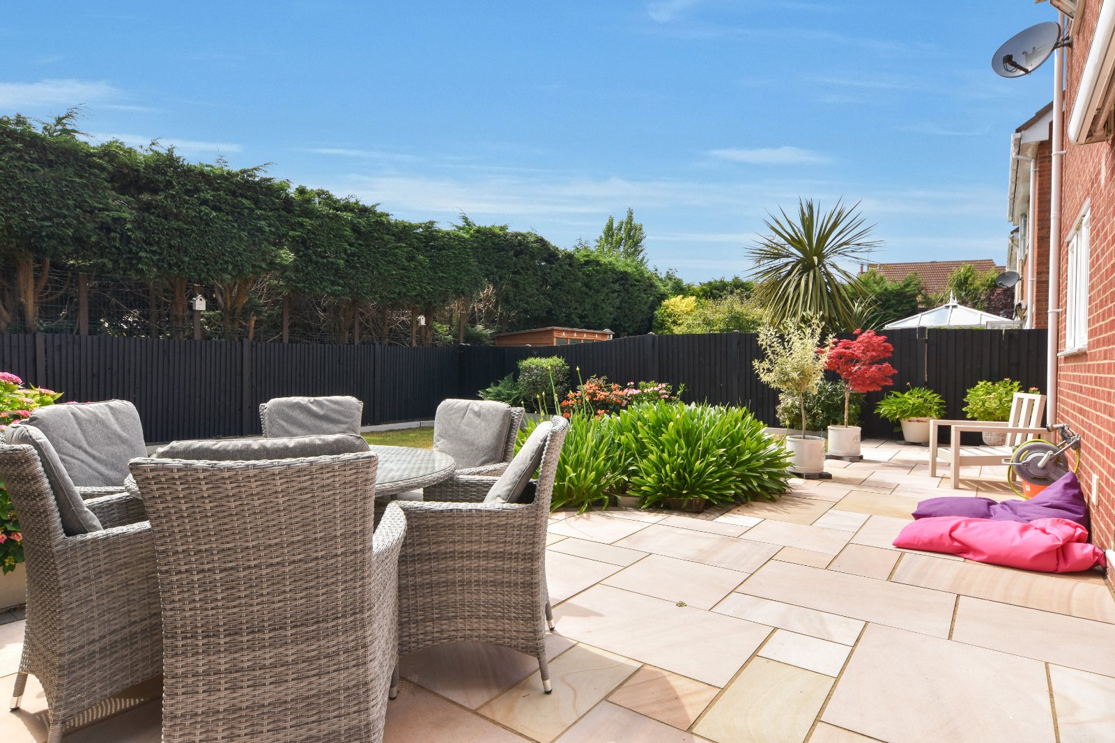 Enjoy all-day sun in this attractive SOUTH FACING rear garden. Access is gained via the Kitchen/Diner and the Utility Room, the landscaped Garden is the perfect balance of lawn and entertaining space. A spacious 'Indian sandstone' patio wraps around the rear of the home. External water tap. There is a variety of mature shrubs and plants, the garden offers privacy. Well-maintained borders and fencing to boundaries. Front the Kitchen/Diner there is a remote controlled awning. There is gated access form the side of the proeprty to the frontage of the home.