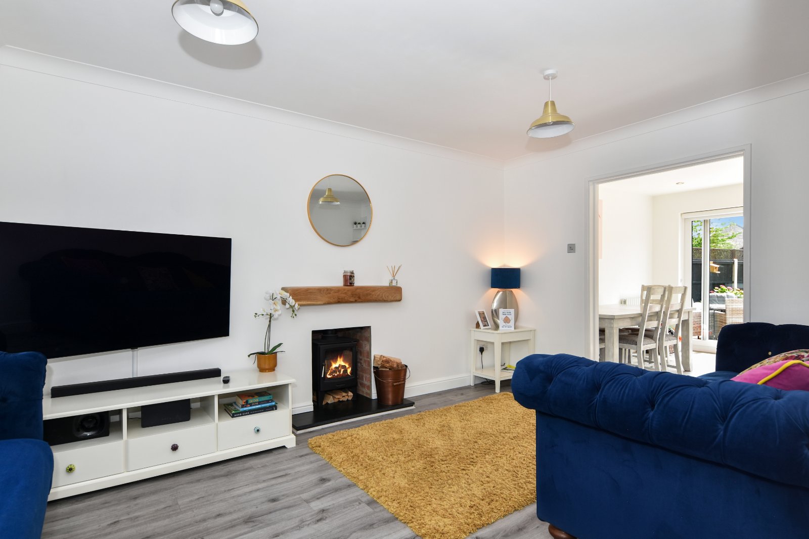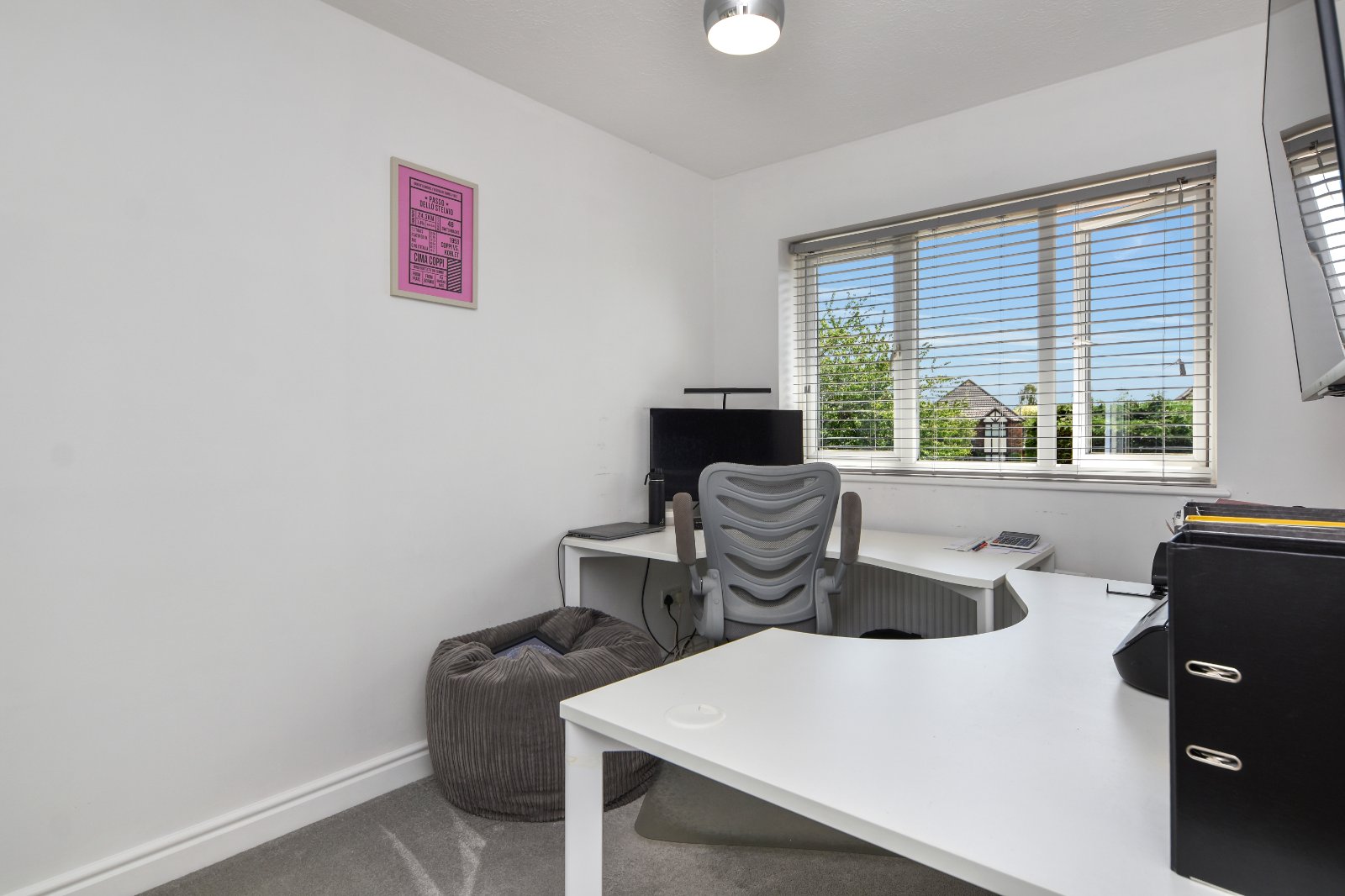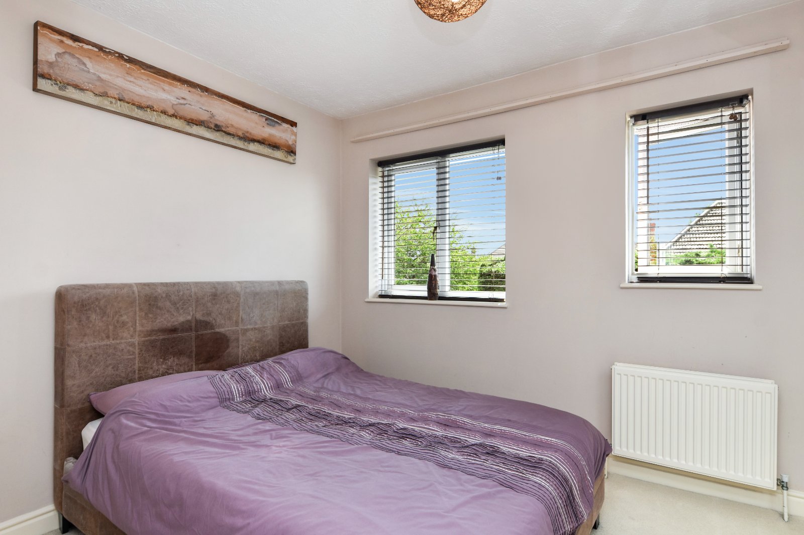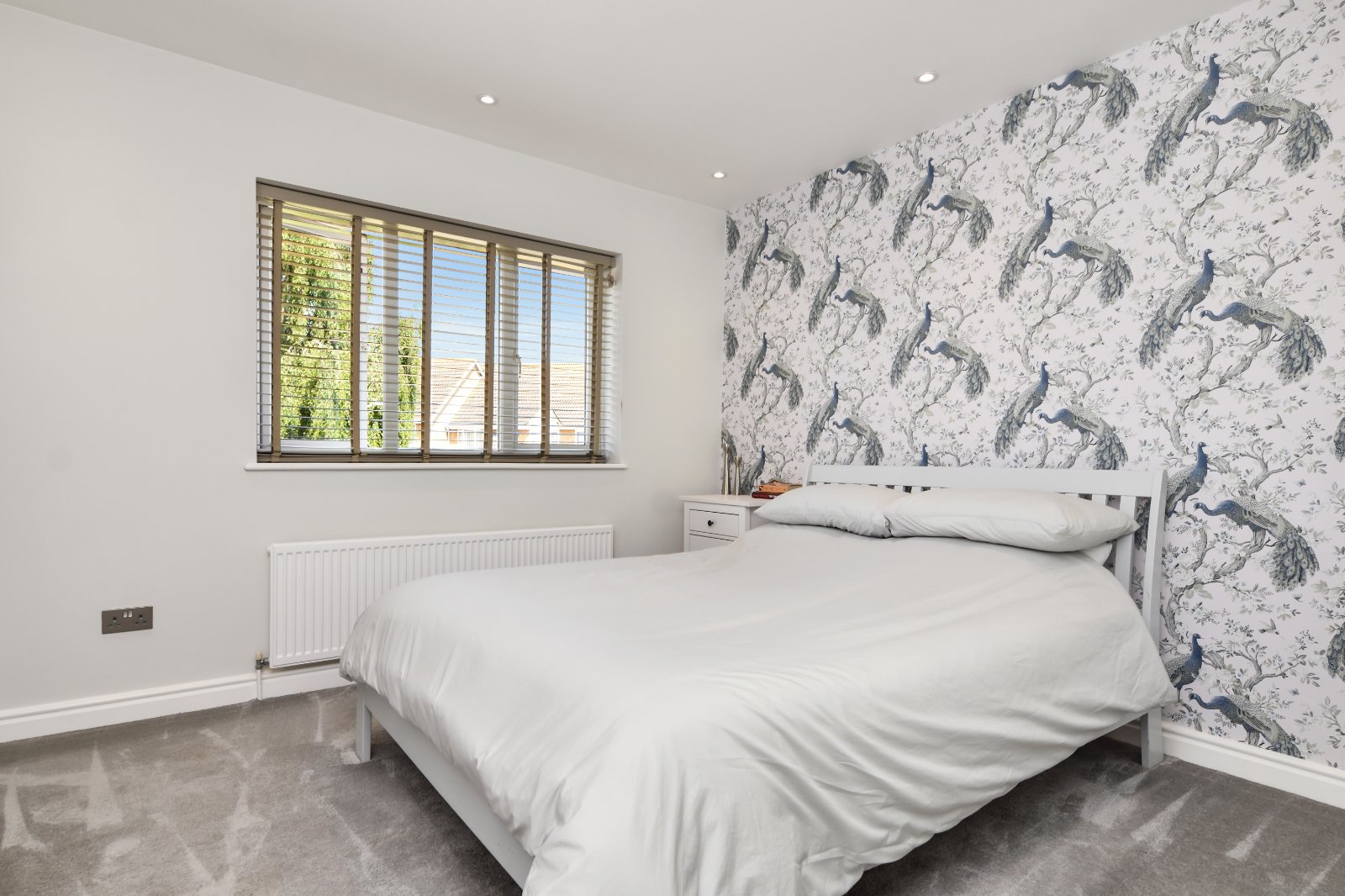 The home is set within a pretty cul-de-sac from Churchfields, and offers a stylish, low-maintenance frontage, featuring a smart block-paved driveway providing off-road parking. Neat decorative stone chippings and well-kept border planting enhance the kerb appeal. Direct access to Garage via electric roller garage door. A side access gate leads conveniently to the rear garden.