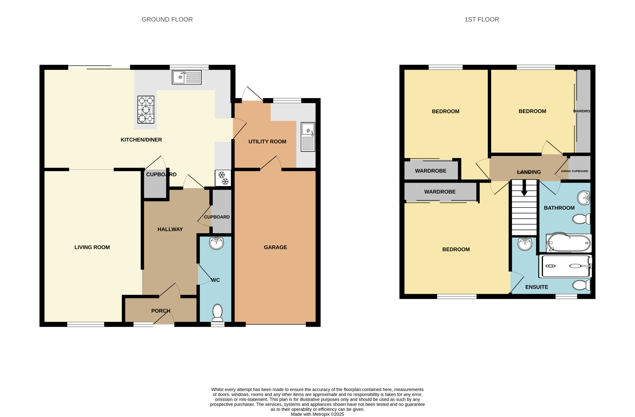Upstairs, you’ll find three generously sized bedrooms, all featuring fitted wardrobes, a modern family bathroom, and an upgraded en-suite shower room to the main bedroom.