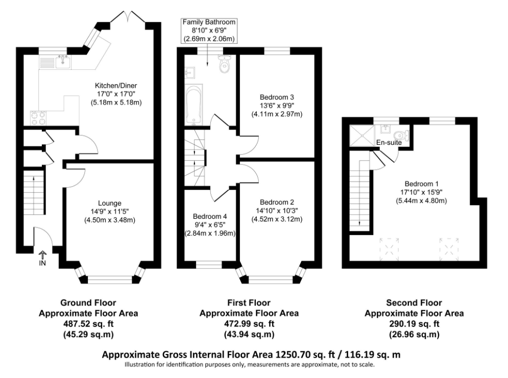 Hunt Roche Lettings are pleased to offer this deceptively spacious, three storey family home benefitting from top floor master bedroom with ensuite shower room, three first floor bedrooms (two doubles, one single) and large family bathroom, the ground floor offers large living room and open plan dining room kitchen. There is a good sized garden to rear. Offered unfurnished and available now