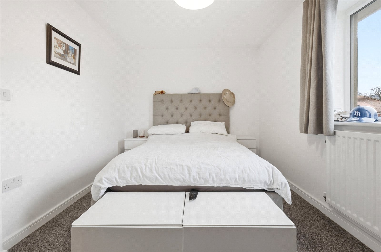overall size. Large almost full height UPVC double glazed window to front. Further double glazed window to front Wall mounted radiator. Large storage cupboard to side. High level skirting. Smooth plastered ceiling. Door to side provides access to the: