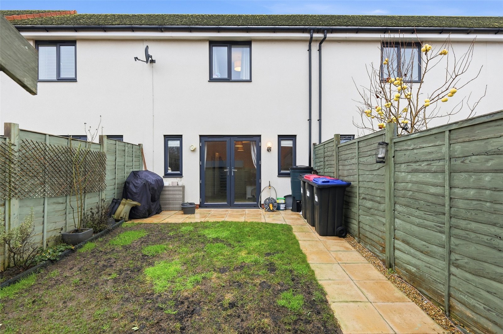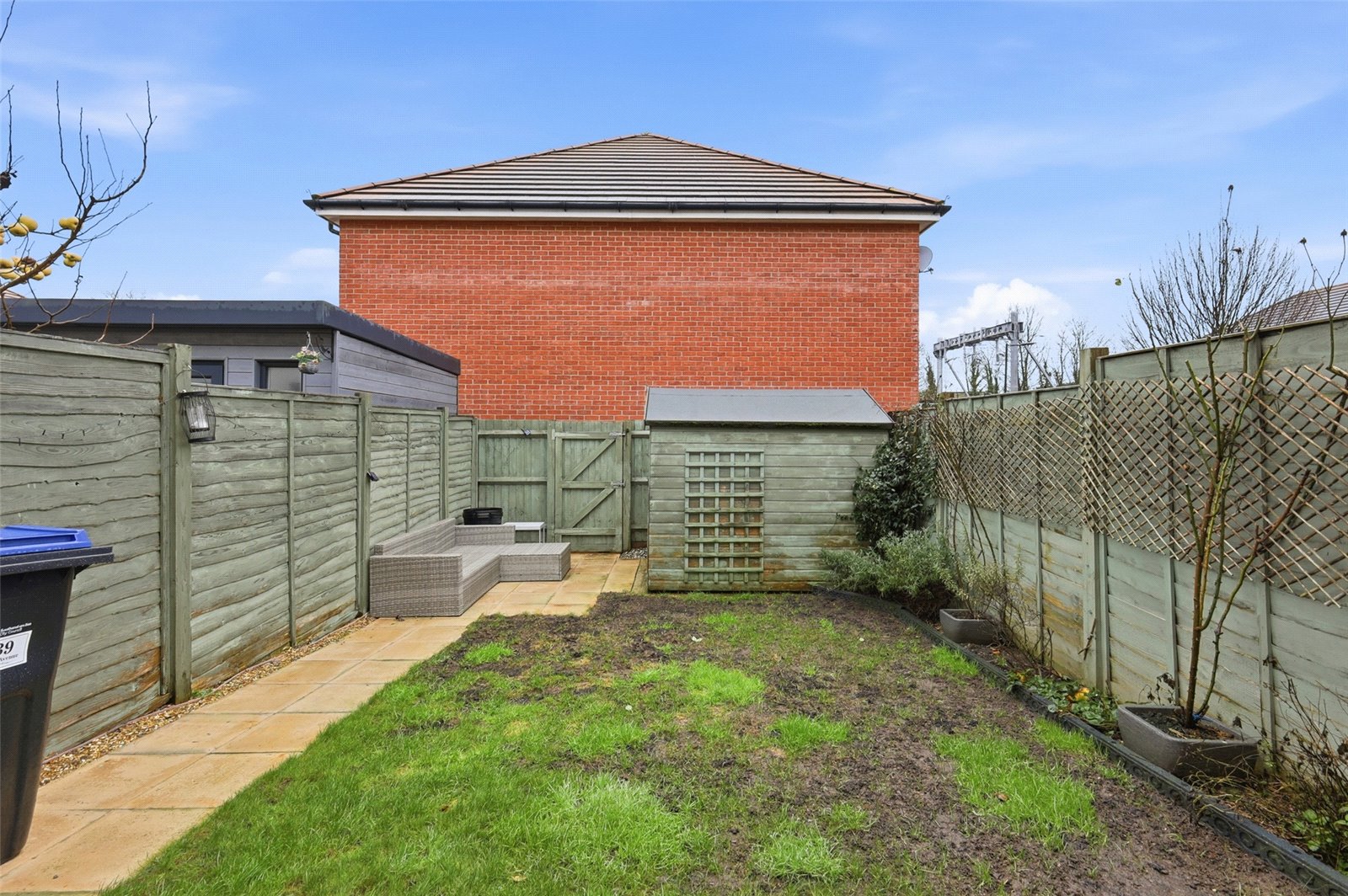 The property benefits from a low maintenance garden to rear with paved patio area commencing from the rear of the property with path to rear leading to rear access gate. Hard standing for timber framed storage shed, existing to remain. Remainder laid to lawn with planted borders. Exterior lighting.