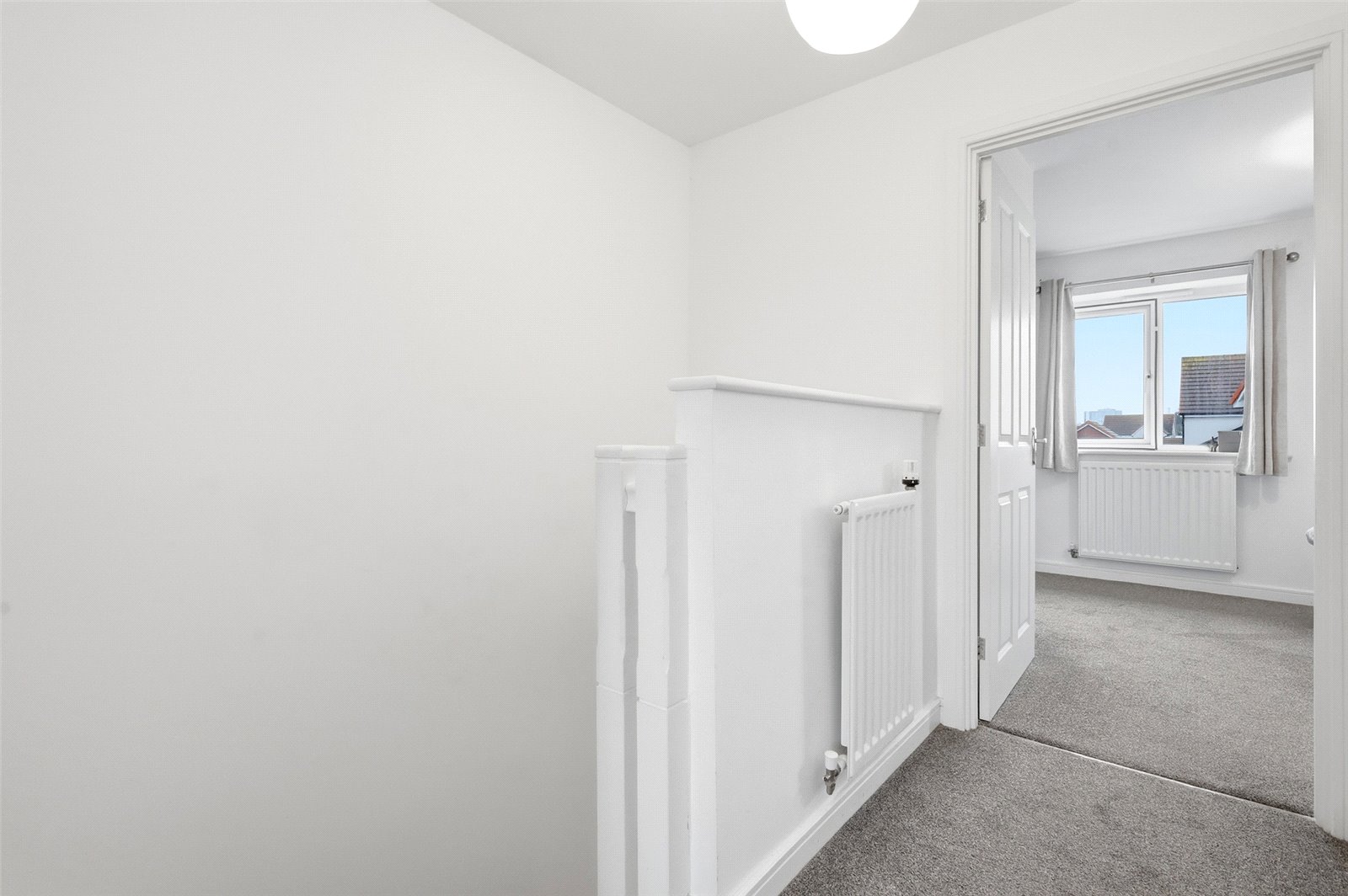 Doors lead off to all rooms. Access to loft space via drop down hatch. Storage cupboard to side. Wall mounted radiator. High level skirting. Smooth plastered ceiling.