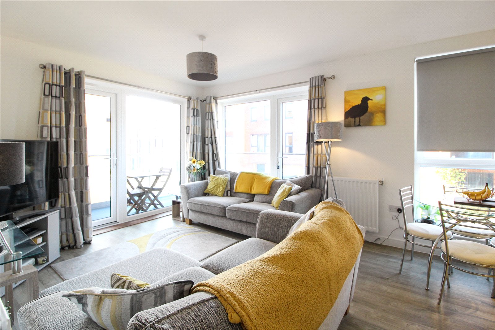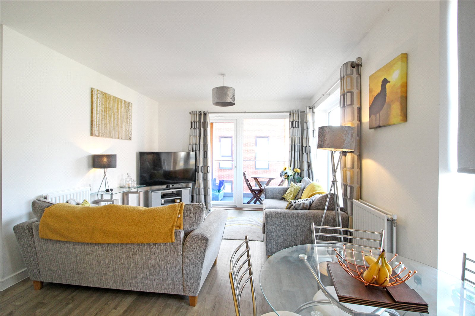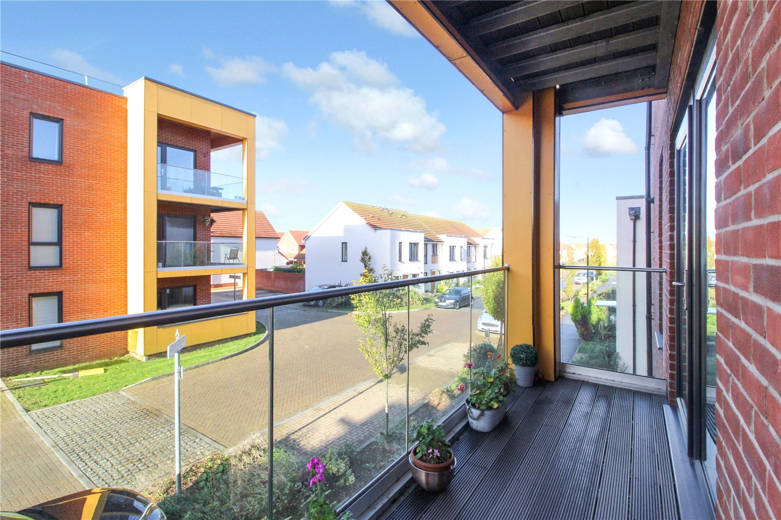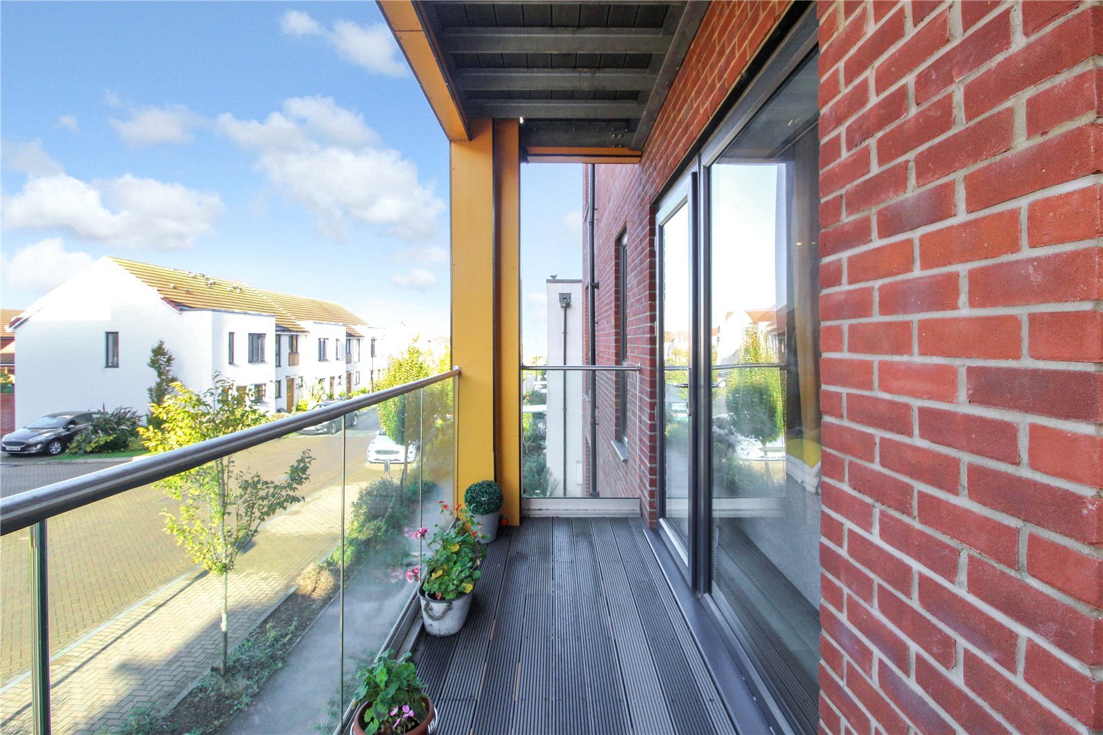 South-west facing, private balcony area which wraps around double aspect living room and is perfect for enjoying a glass of your favourite tipple in the evenings.