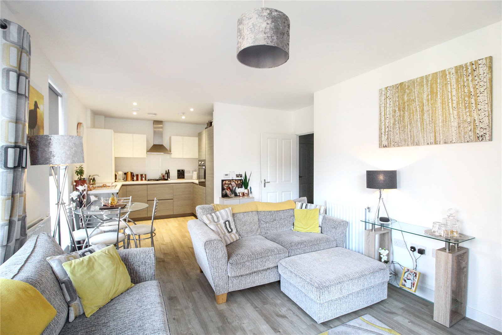 Bright and airy living room, with double glazed door and window to side aspect and double-glazed door and window to front aspect. Amtico flooring, smooth ceilings, 2 x radiator, open plan to: