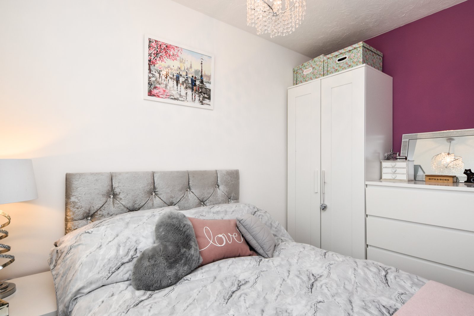 uPVC double glazed window to front aspect. The bedroom is fitted with a three door wardrobe. Further high level door to over-stairs storage cupboard. Radiator. Textured ceiling.