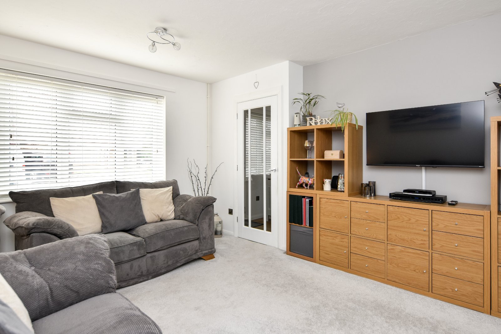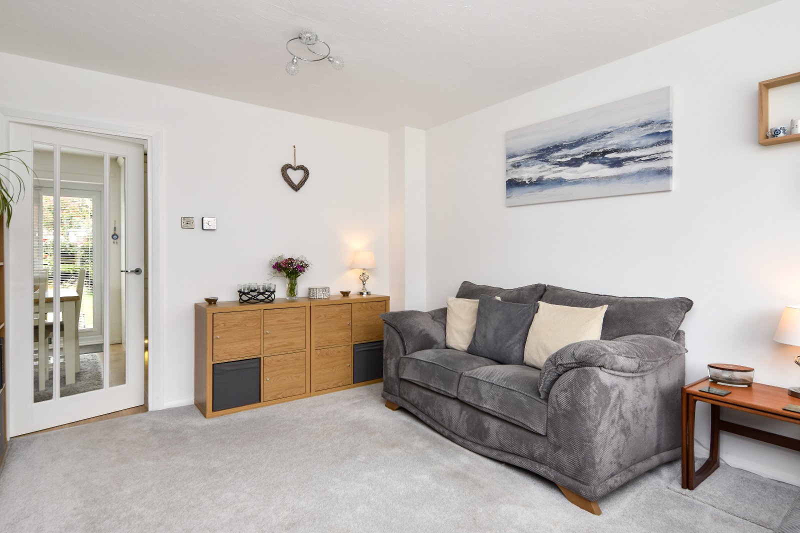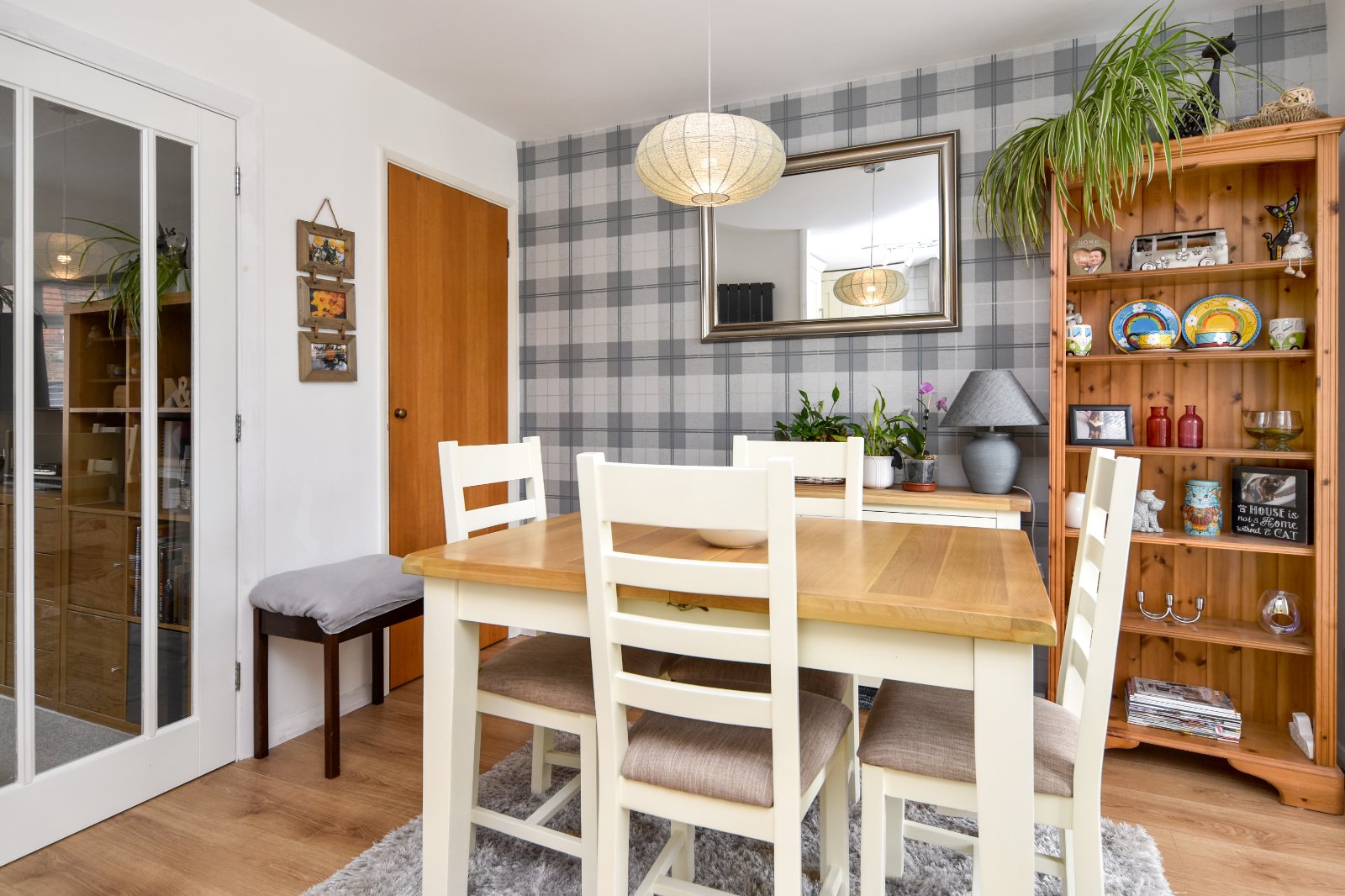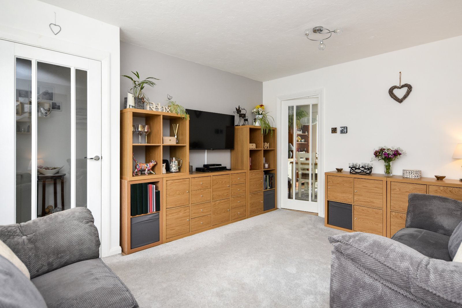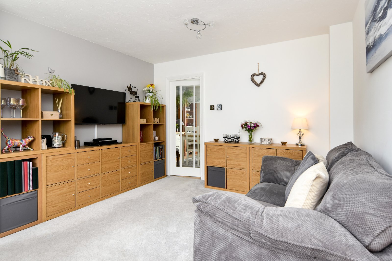 Pair of uPVC french double glazed doors opening to the rear garden. Contemporary upright flat panelled radiator. Door to under-stair storage cupboard. Laminate wood effect flooring. Textured ceiling.