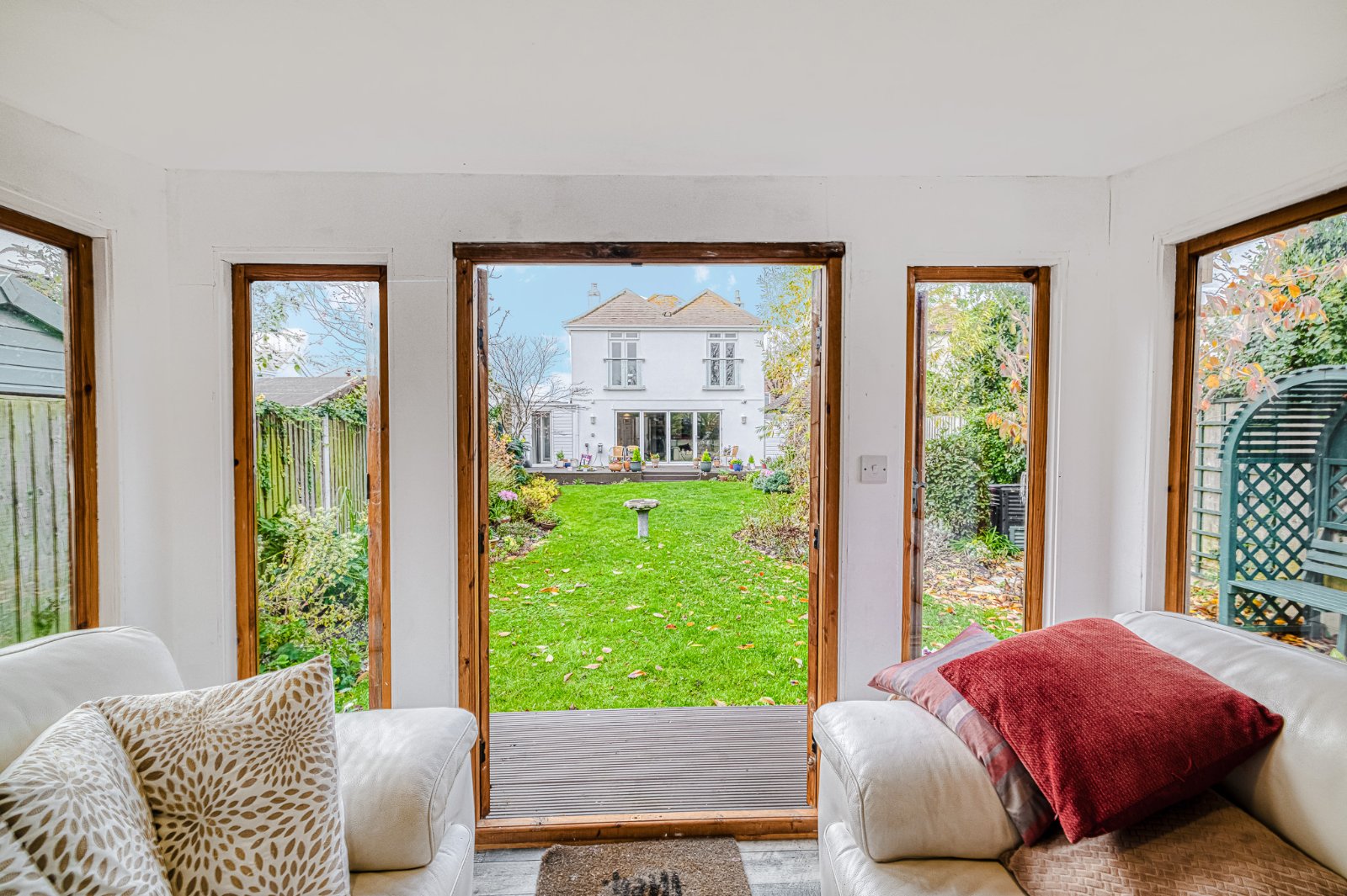 The beautiful and generously sized established rear garden is approached via the Family Room and begins with an expansive decked patio seating area, ideal for outdoor dining and entertaining. The garden is predominantly laid to lawn and complemented by exquisitely landscaped and sculpted flowerbed borders, providing year-round interest, colour, and texture. Fencing to the boundaries with gated side access for added convenience. Further benefits include an exterior water tap and a charming timber summerhouse located at the rear of the garden