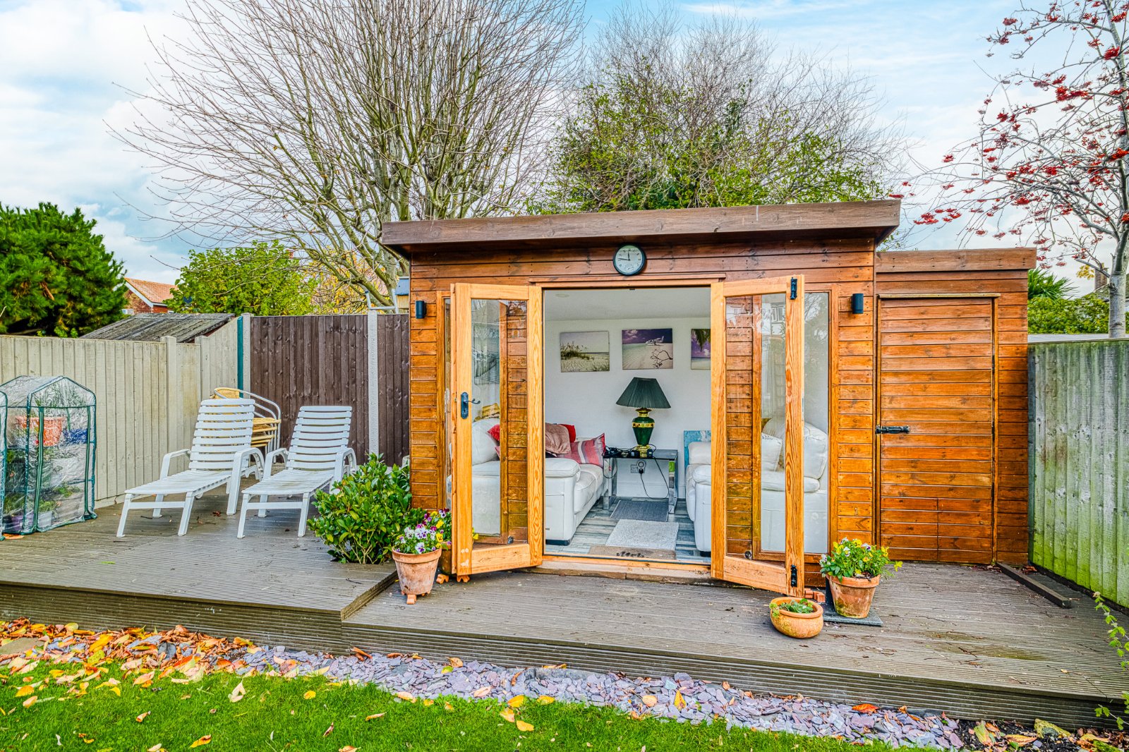 The rear Garden is of generous size with a newly installed 10' x 8' Summer House which has been fully insulated, with power and lighting with a further decked patio seating area to the side.