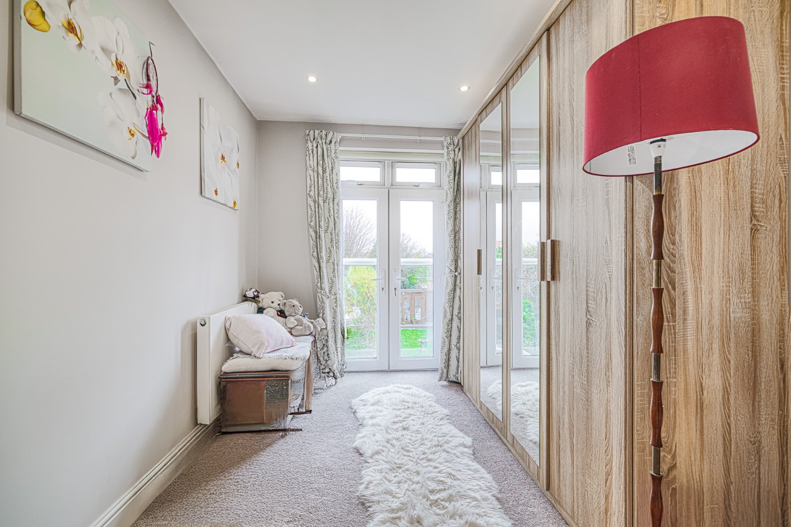 Pair of uPVC double glazed doors with fanlight openers, opening to Juliet style balcony. Radiator. Smooth plastered ceiling inset with recessed lighting.