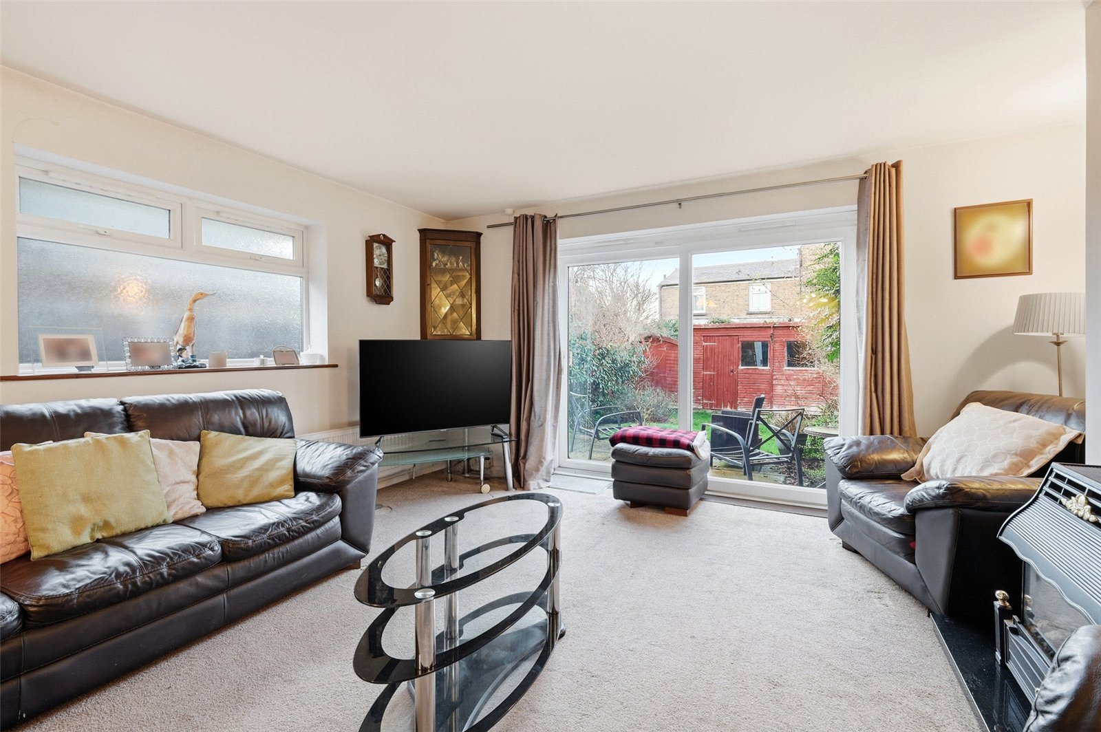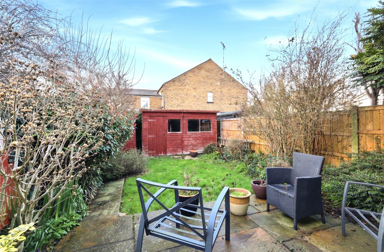 The rear garden commences from the lounge/dining room with a paved patio terrace ideal for dining alfresco. Full-height fencing to both side boundaries with well planted borders, and hardstanding to rear for two timber garden sheds. Secure gated side access to the front of the property.