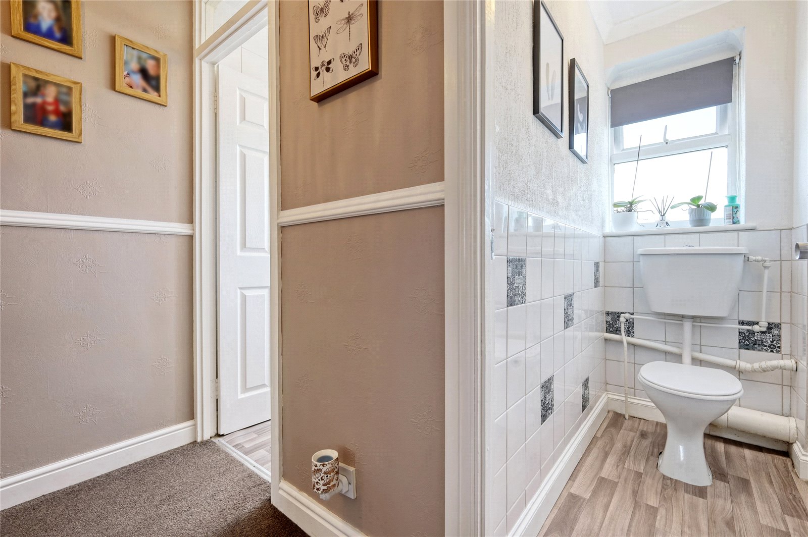 Obscure uPVC double glazed window to rear. Vinyl flooring. Tiling to half height. Coved cornice to ceiling.