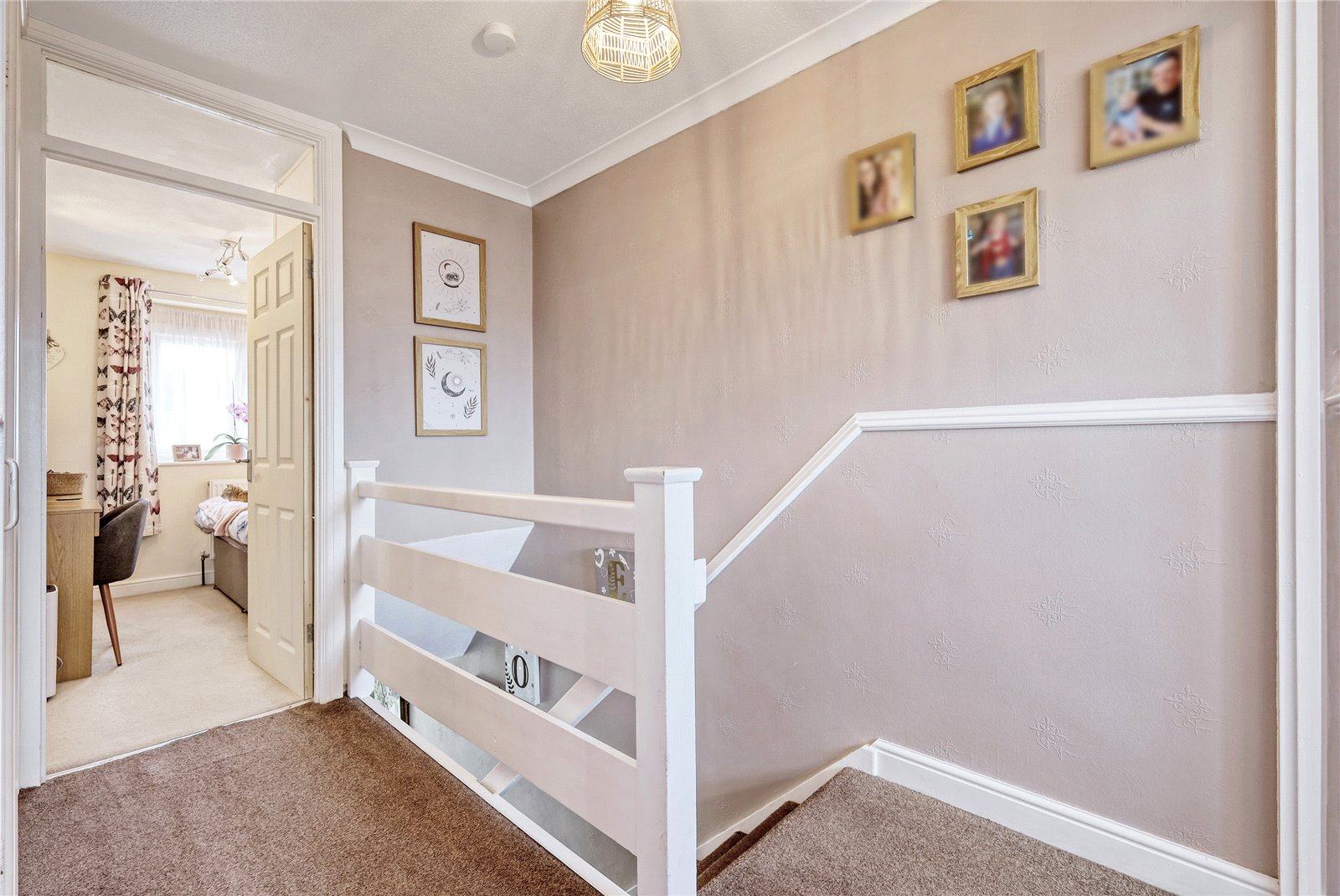 Access to insulated roof space. Dado rail. Access to boiler cupboard housing gas combination boiler serving domestic hot water and central heating system. Coved cornice to ceiling. Doors lead off to first floor rooms.