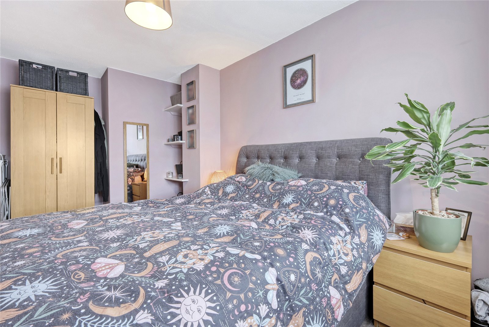 uPVC double glazed window to rear. Radiator. Built in louvre fronted double wardrobe cupboard with overhead storage.