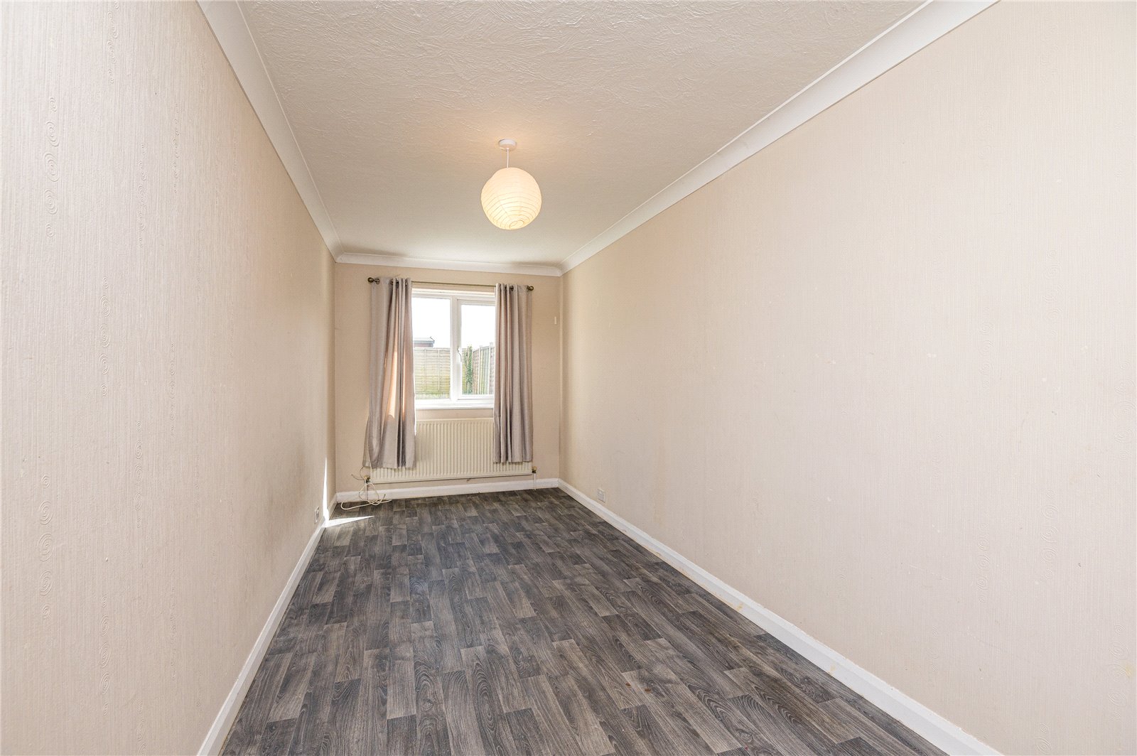Wood effect vinyl flooring. Radiator. Staircase to first floor landing. Central heating thermostat. Coved cornice to ceiling. Doors lead off to: