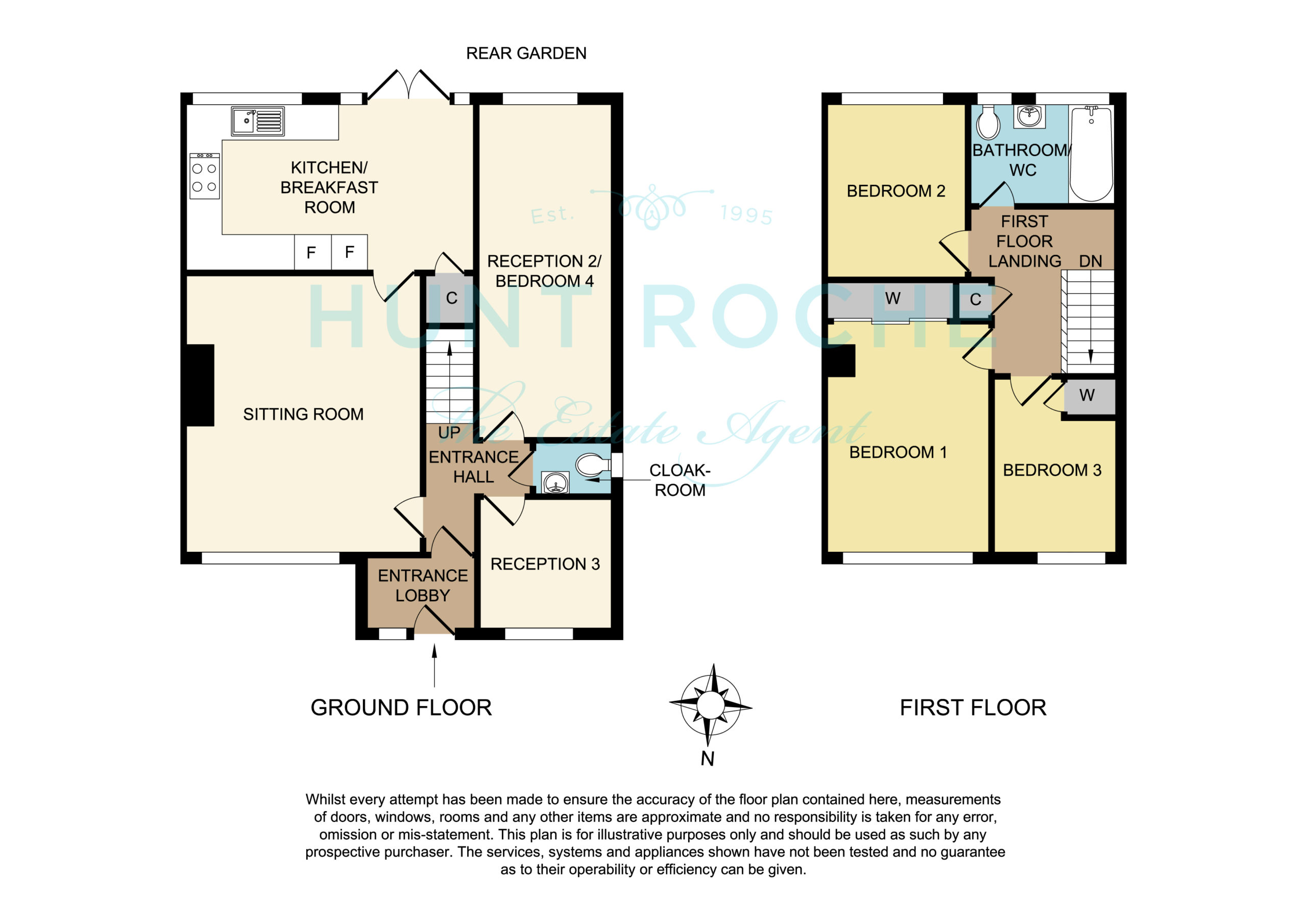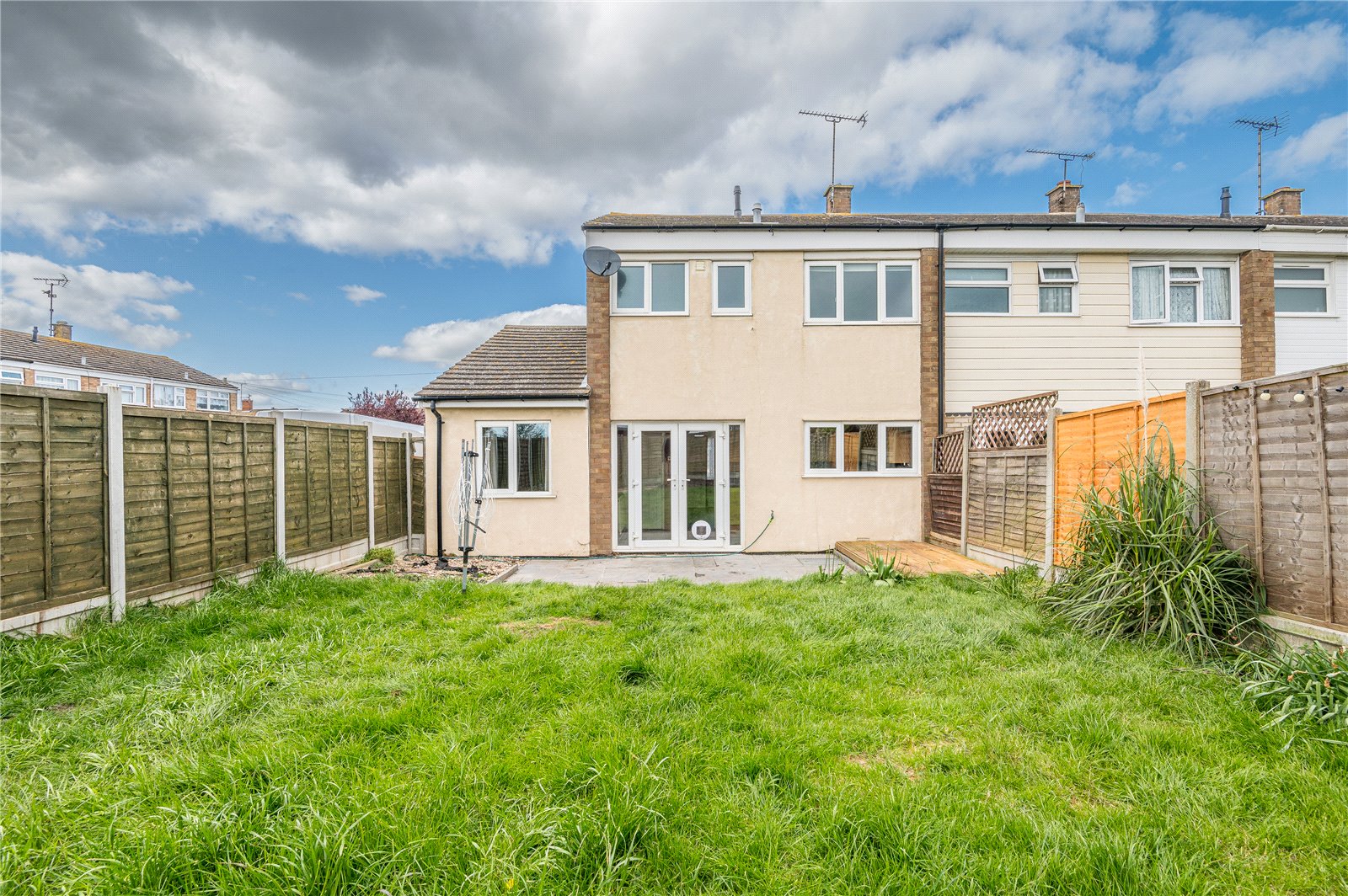 The rear garden commences from the kitchen/diner with a paved patio terrace. The garden is mainly laid to lawn, with hardstanding to rear. Fencing to both sides and rear boundaries. External water supply.