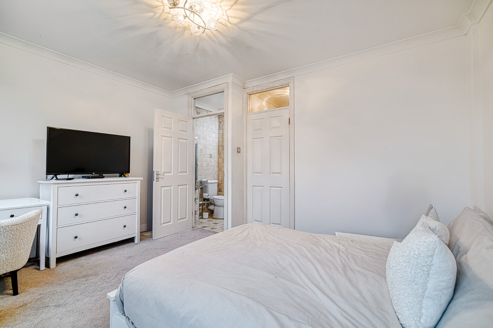 Panelled doors off to Bedroom Two, Bedroom Three and the Family Bathroom. Further panelled door to good size airing cupboard inset with shelving. Finished with coving to smooth plastered ceiling and access to loft space.