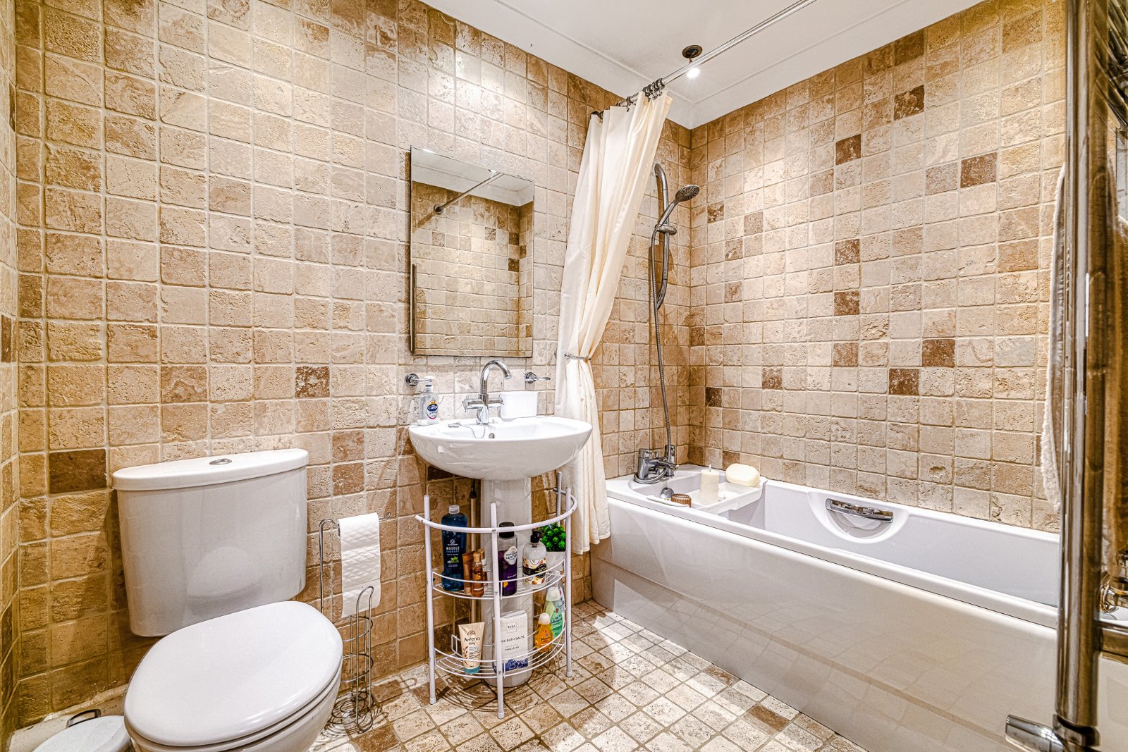 Fully tiled Family Bathroom: (2.54m x 1.65m)