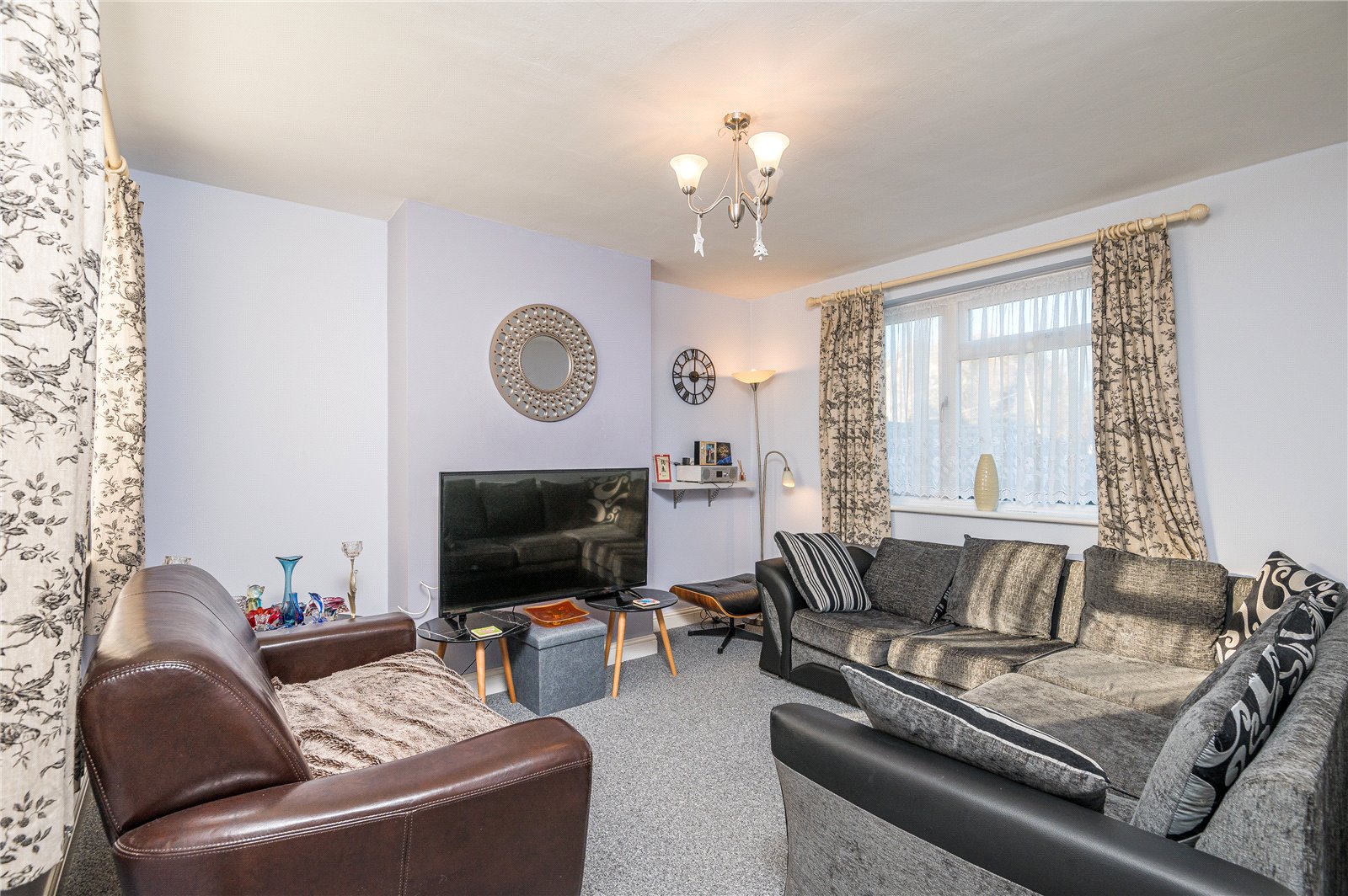 A dual aspect room with UPVC double-glazed windows to front and rear. Radiator. Lipped skirting. Television aerial point. Smooth plastered ceiling. (Agent’s note: there is an opportunity to extend the sitting room or add a conservatory orangery, subject to planning consent.)
