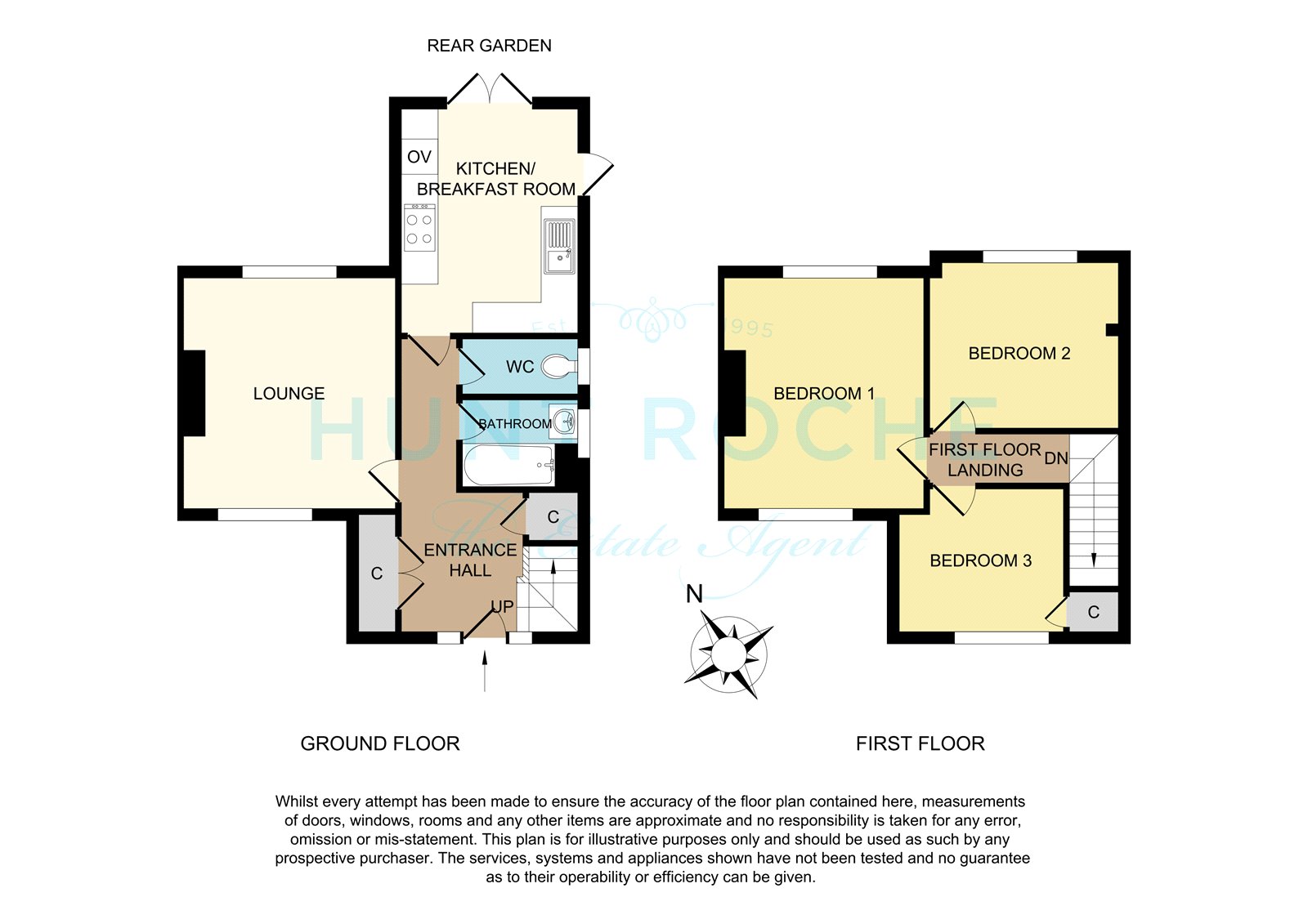 The rear garden measures circa 55’ and commences from the kitchen/dining room with a hardstanding area, with an extending footpath that leads to a further suntrap patio to the rear of the garden. Fencing to sides and rear boundary. An open sideway has a herringbone brick block paviour footpath leading to the independent driveway.