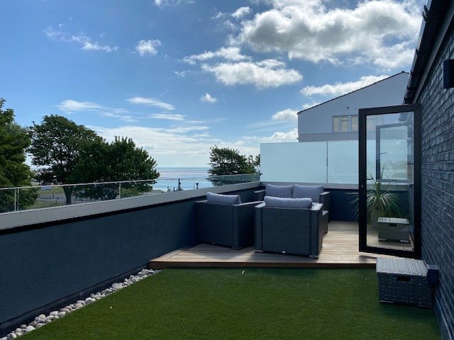 The property features cutting-edge architecture designed by Hedgehog and provide unique five bedroom accommodation fitted throughout to a high specification and incorporating a feature roof top garden with sea views.
