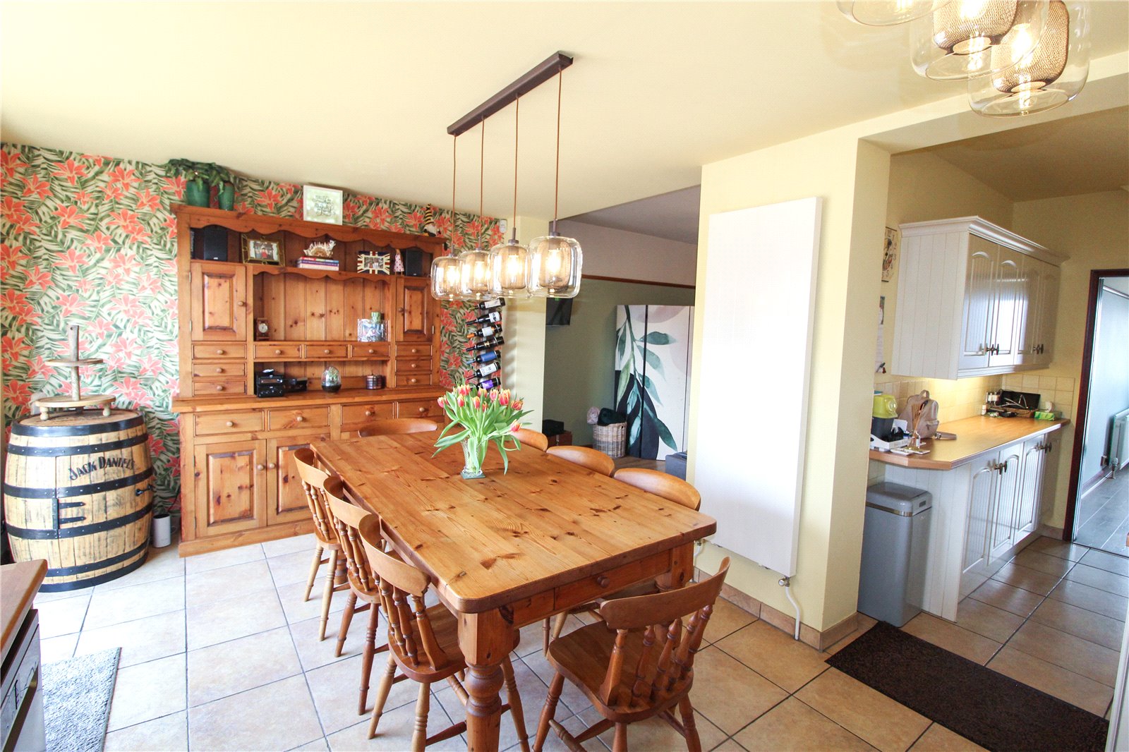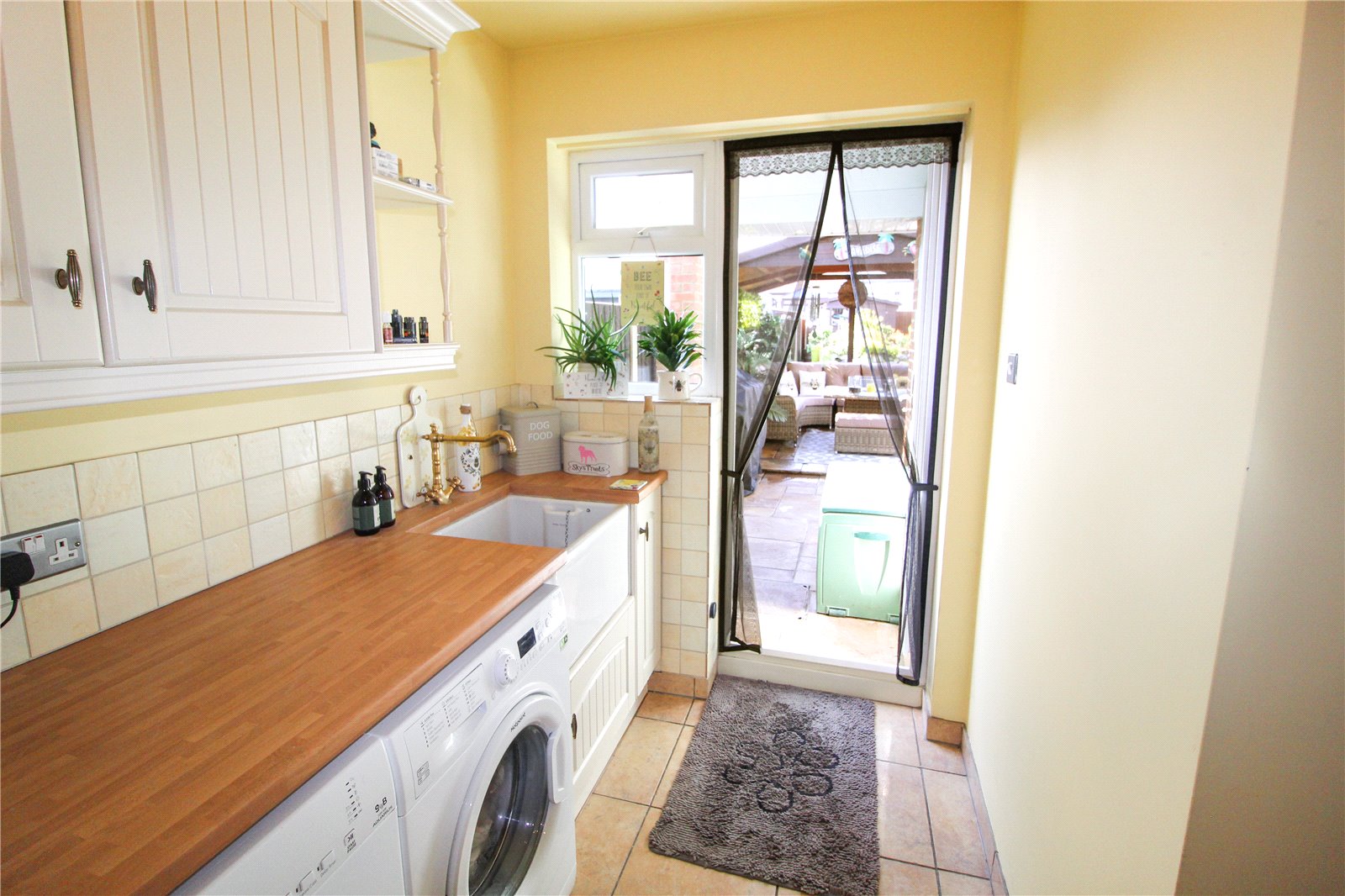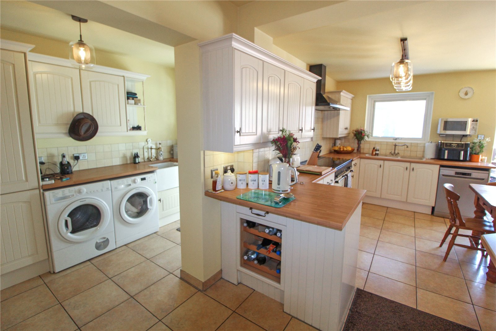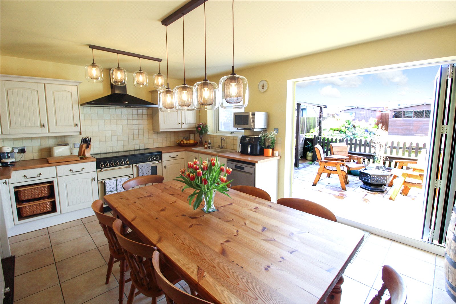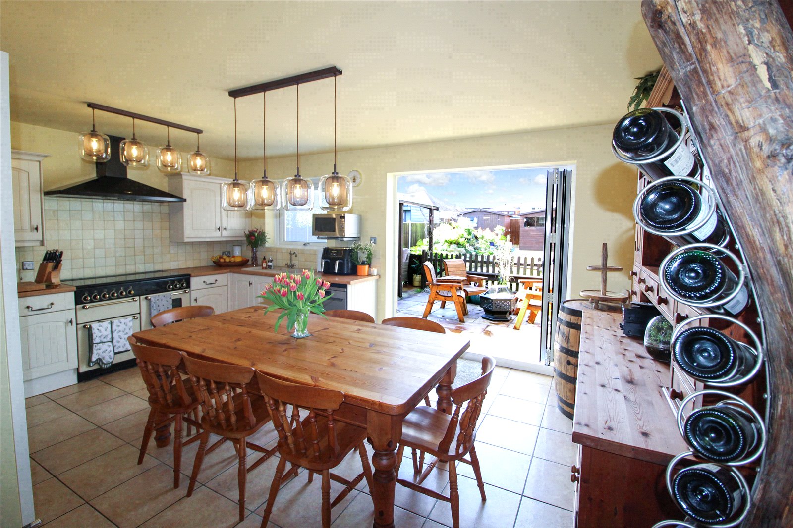 The kitchen further benefits from a rangemaster cooker and wine rack. uPVC double glazed bi-folding doors fitted with integral blinds give access to the rear garden whilst a uPVC double glazed window fitted with integral blinds overlooks the rear garden.