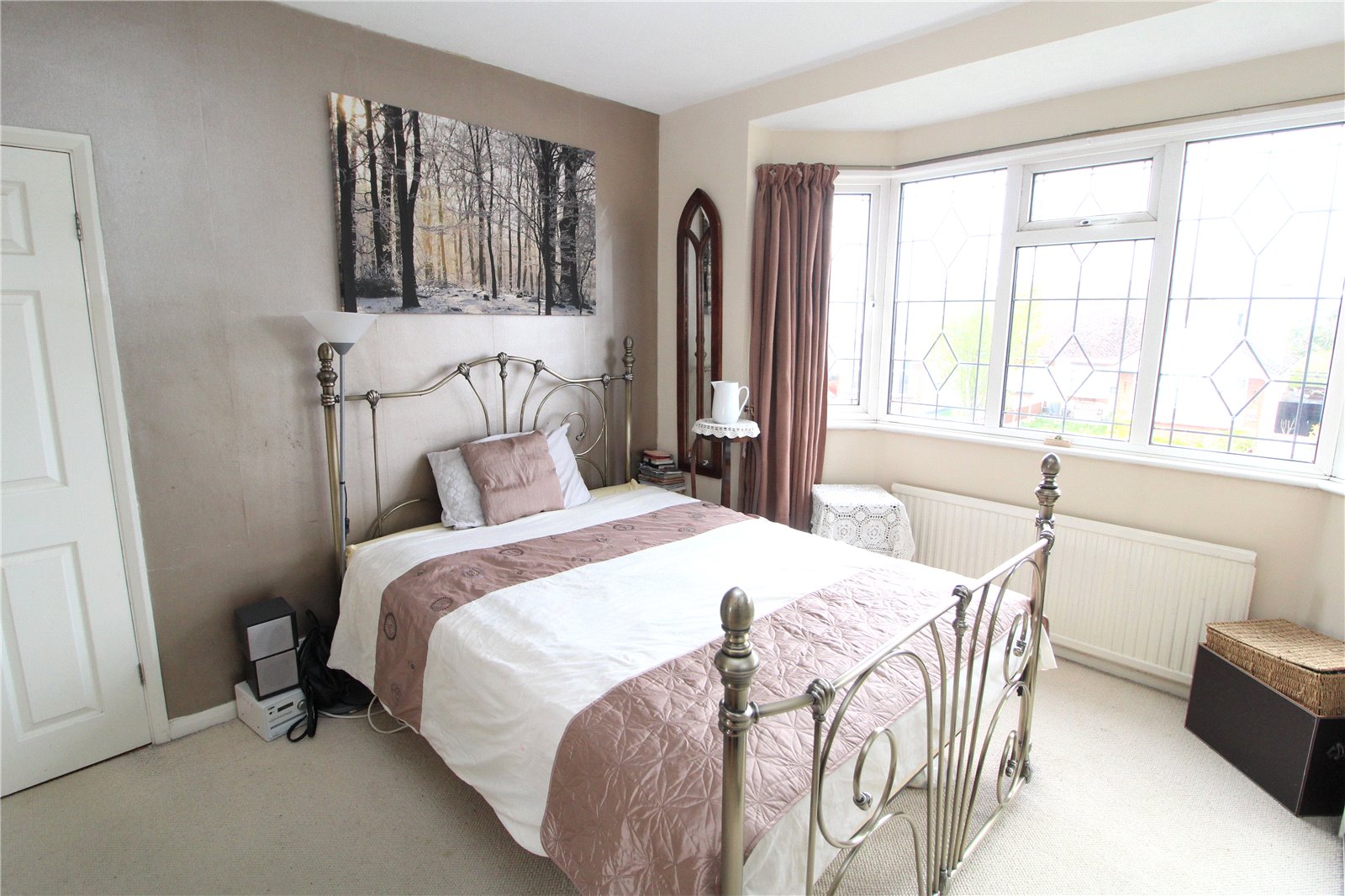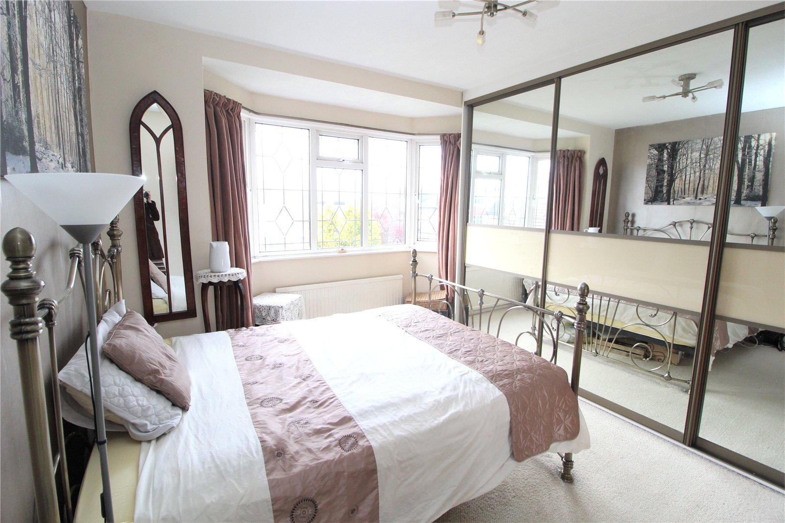 Double glazed leaded light bay window to front. Radiator. Range of floor to ceiling wardrobe cupboards with sliding doors along the length of one wall.