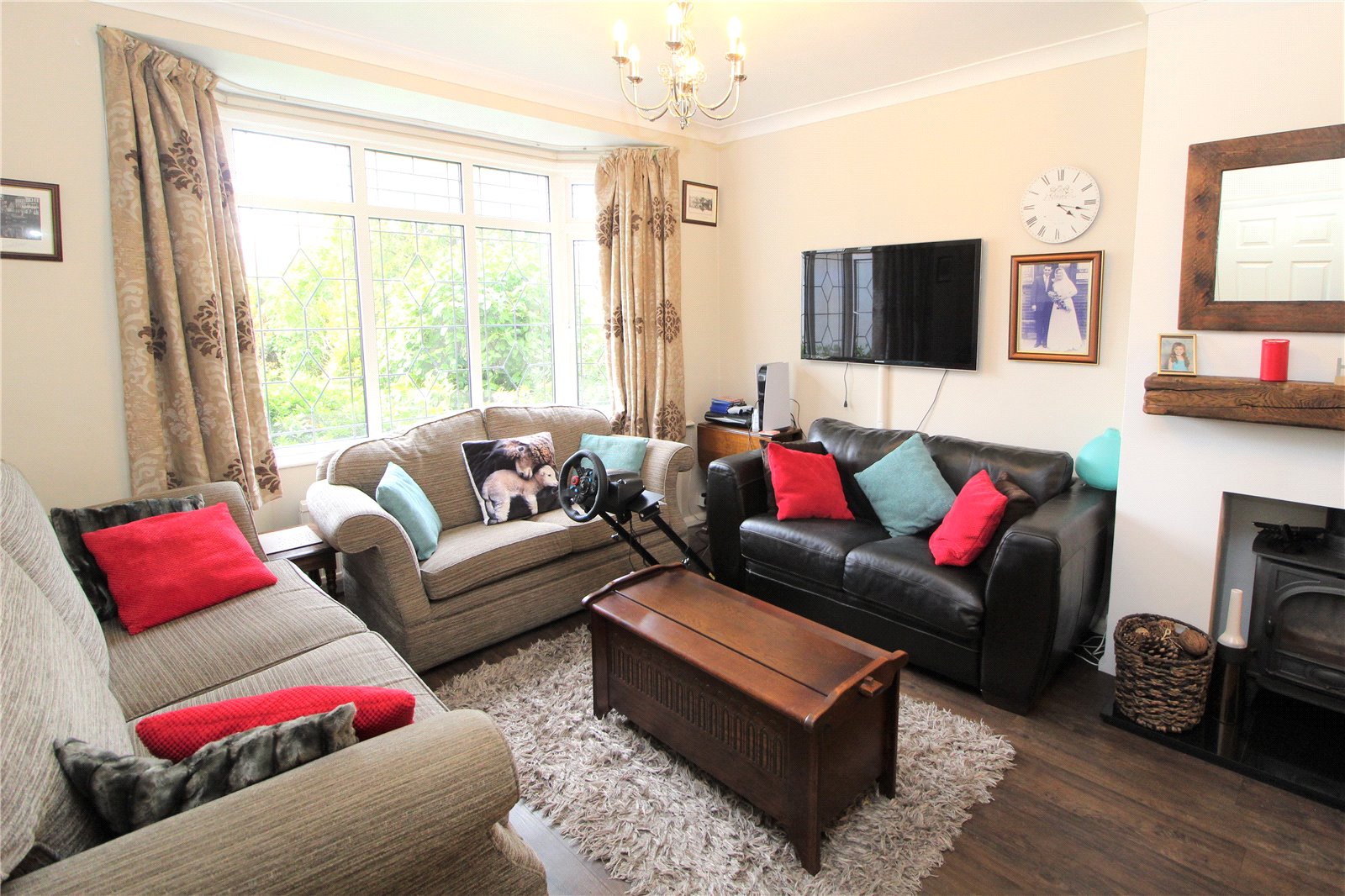 Double glazed leaded light bay window to front. Smooth plastered walls. Coving. TV aerial point. Multi fuel log burner/fire with marble hearth and feature wooden mantle. Two double radiators. Amtico flooring. Access to