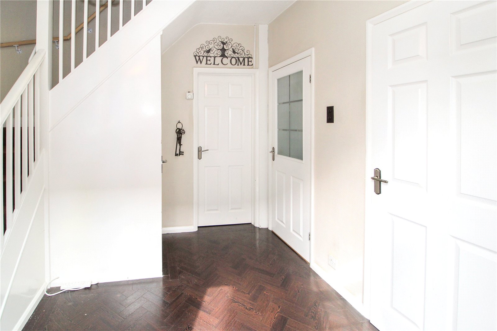 Turn staircase to first floor and landing. Radiator. Understairs storage cupboard housing meters. Half glazed door to kitchen and panelled doors to all other rooms. Amtico flooring.