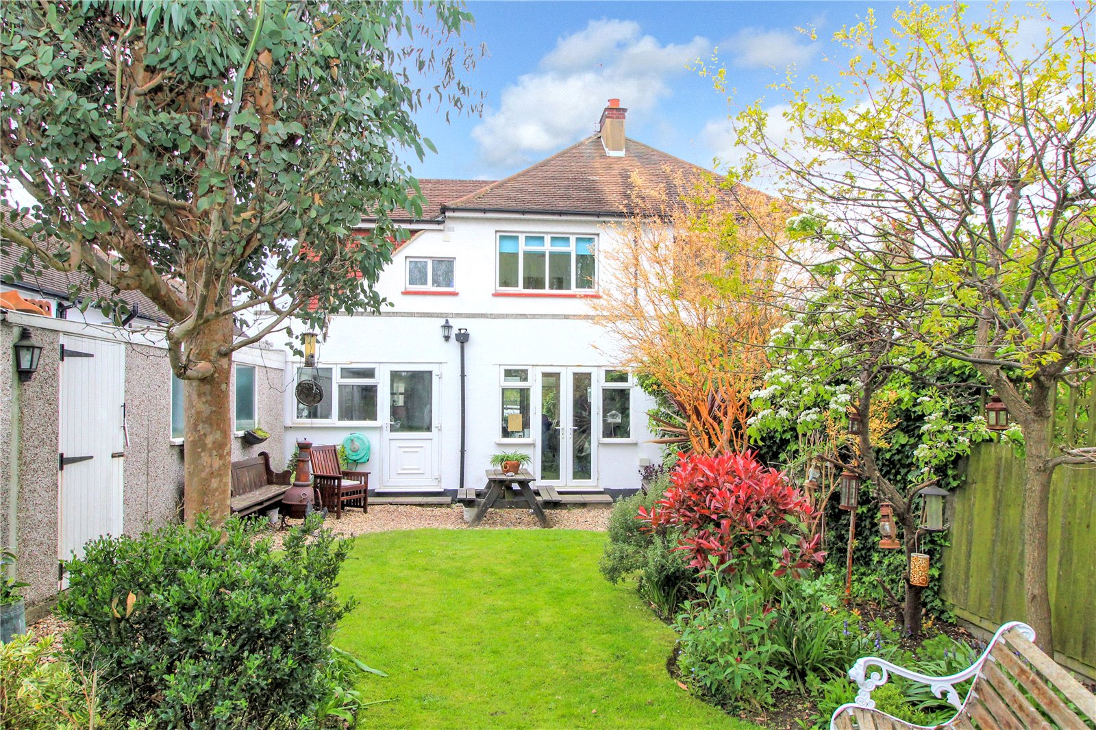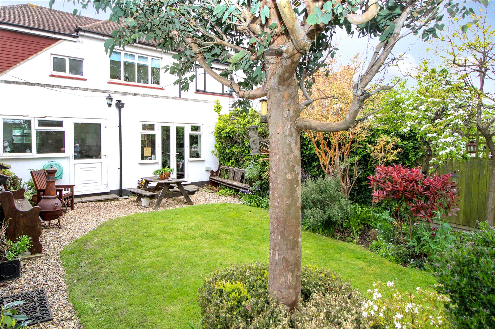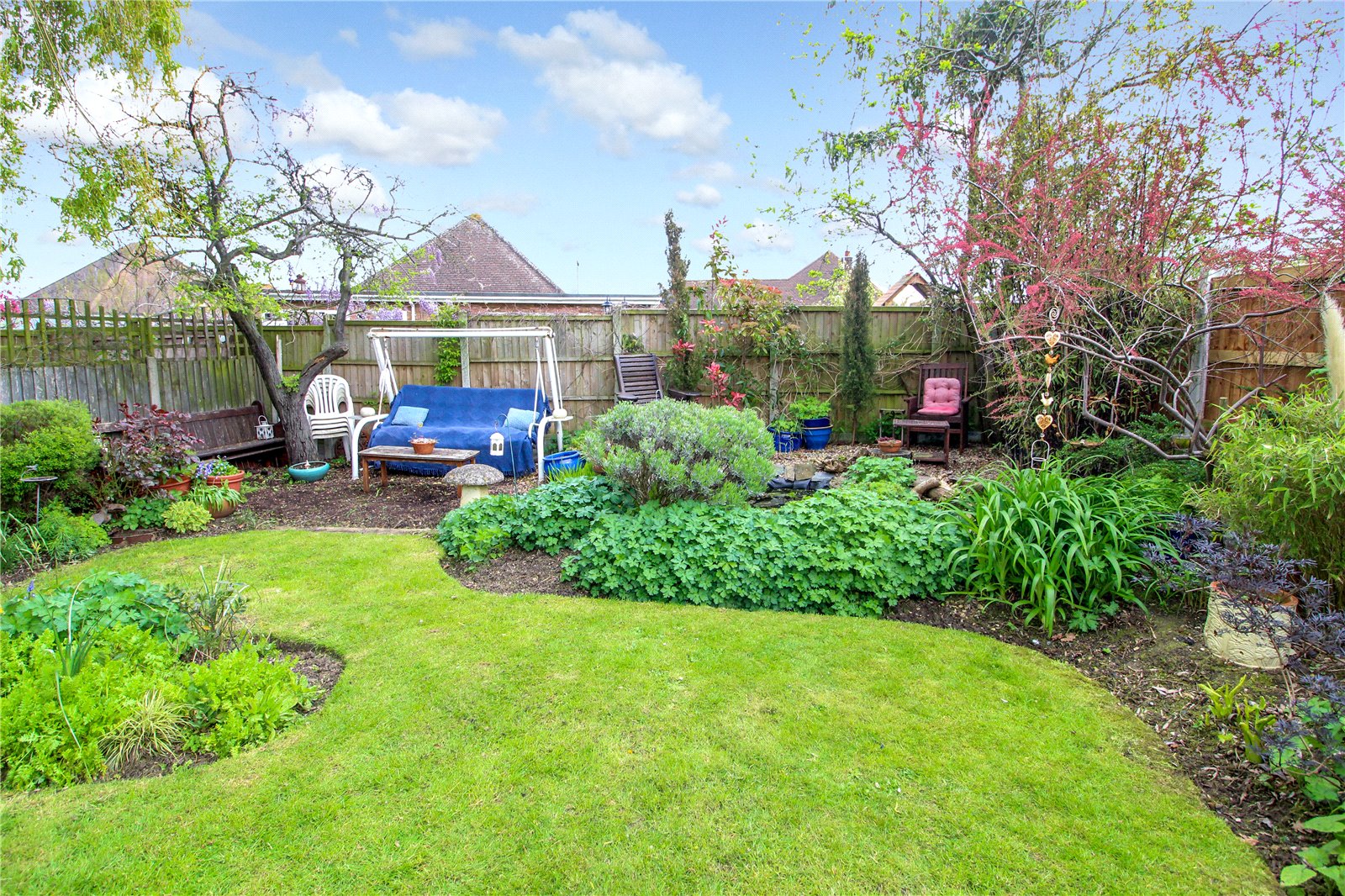The Rear Garden is delightfully landscaped and measures approx. 90ft in depth being laid to lawn with an array of well stocked flower/shrub borders and various trees. Natural pond. Fenced to boundaries. Outside water tap and lighting. Personal door to garage.