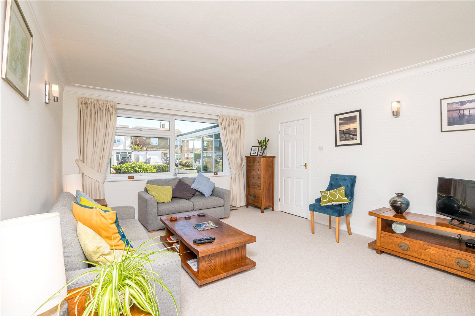 Large almost full width UPVC double glazed window to front. Three floor mounted warm air central heating vents. Feature fireplace with space for inset gas burner. High level skirting. Coved cornice to smooth plastered ceilings. Double wooden doors to front provides access to the: