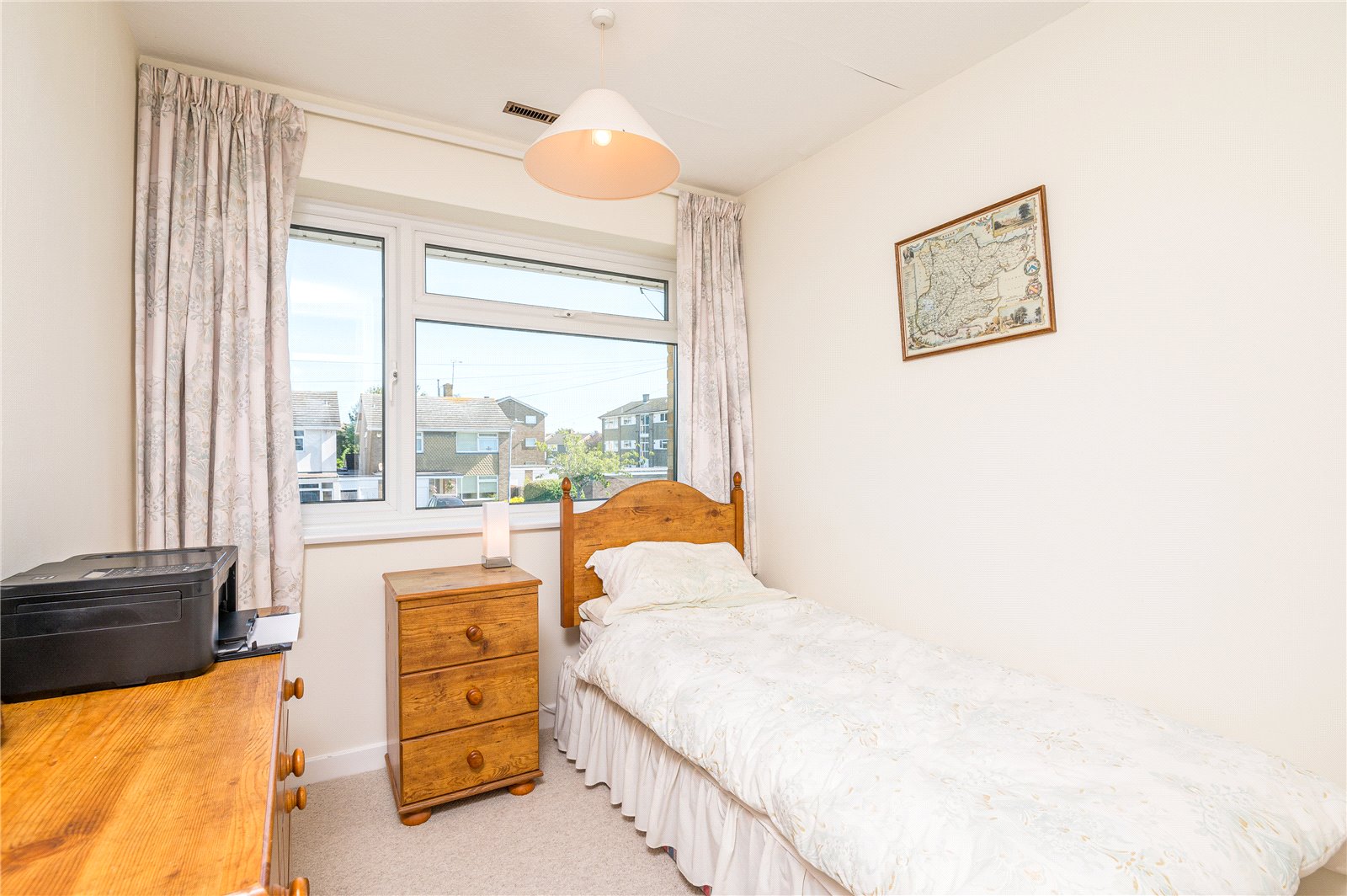 Incorporating fitted wardrobe unit. UPVC double glazed window to front. Fitted wardrobe unit with ample hanging space. Shelving above. Warm air central heating vent.