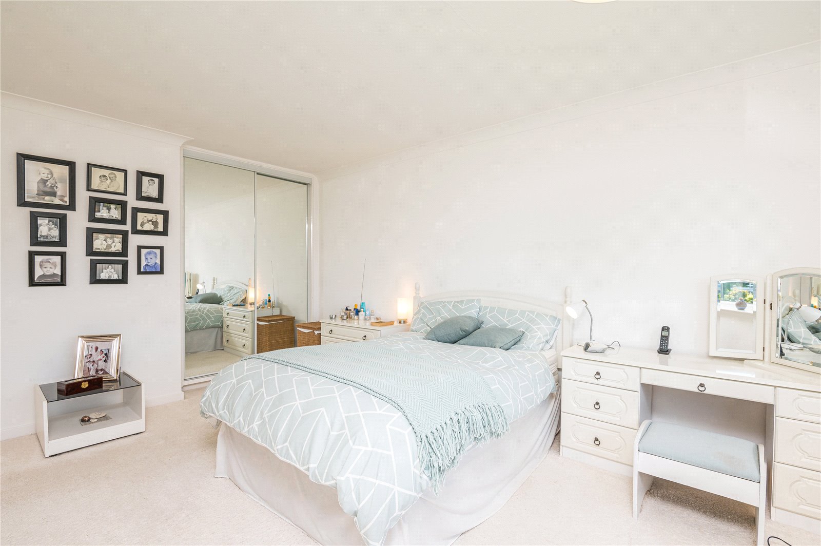 Large almost full width UPVC double glazed window to front. Fitted wardrobe unit with mirrored sliding doors plus further wardrobe unit to side. High level skirting. Coved cornice to ceiling. Ceiling mounted warm air central heating vent.