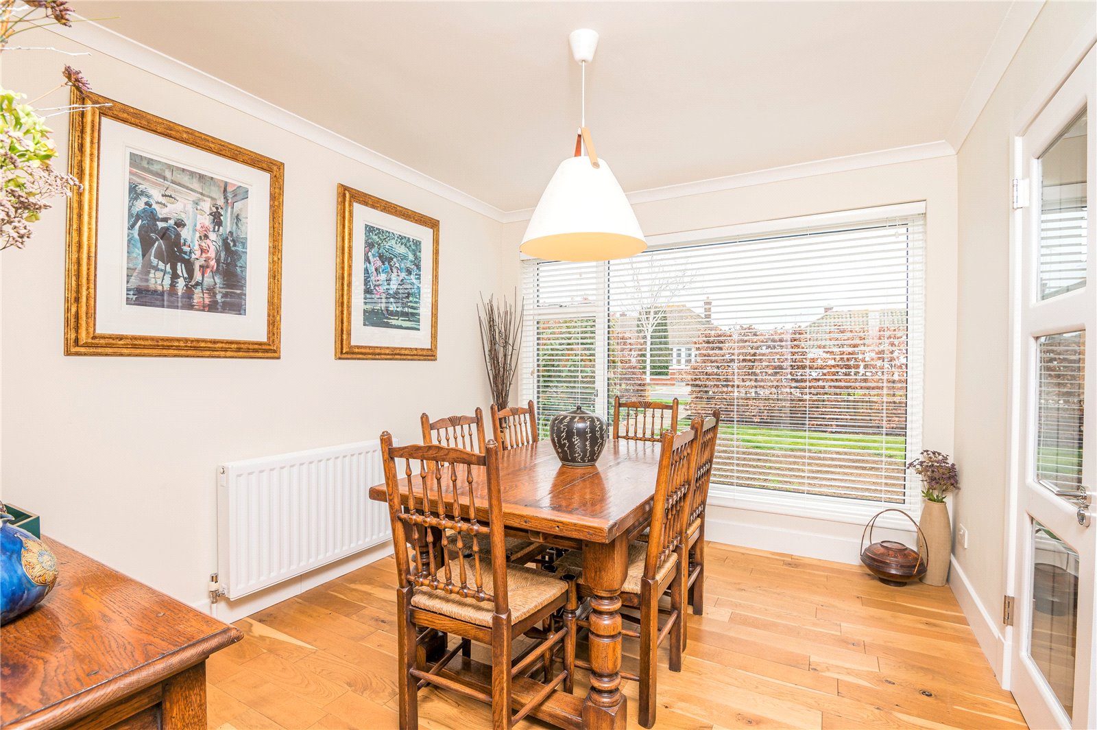 This bright and well proportioned living room enjoys a dual aspect with double glazed windows to front and side. Solid oak wood flooring. Two radiators. Coved ceiling. Glazed double doors leading to:
